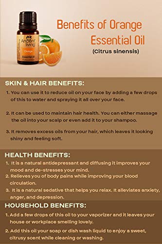 The moment this orangey whirlwind enters your life it'll win you over with it's sweet citrusy fragrance. When used this sweet orange essential oil can add a ray of energy to any place. It keeps everybody motivated! When massaged into your skin it can brighten and refresh your dull skin. When used as a bath oil it can destress your mind and get it actively working. BENEFITS: Orange essential oil benefits range from skincare to therapeutic benefits. SKIN AND HAIR BENEFITS: Orange essential oil for skin: One of the most important skin care benefits of orange is that it has a great oil control action. You can use it to reduce oil on your face by adding a few drops of this to water and spraying it all over your face. Or go ahead and add it your favorite skin care ingredients and make your own DIY toner. Add a few drops of this oil to your bubble bath and it leaves you feeling happy and energetic! You can use this oil to add some sunshine to your face. Orange essential oil for skin can brighten up your face when massaged. You can even add a few drops of this oil to a natural scent-free moisturizer and use it. The skin brightening and anti-inflammatory effects of orange essential oil help fade blemishes acne scars dark spots and more. Add a few drops of this to your homemade facial mask. Sweet orange essential oil is filled with antioxidants that fight premature aging. This benefit of orange for skin decreases wrinkles and improves skin elasticity. If you fancy smelling like fresh oranges then you'll love using this orange oil as a natural perfume. Add a few drops of this in a carrier oil and apply it onto your wrists behind ears hair ends collar bones and other key areas. Orange essential oil for hair It removes excess oils from your hair which leaves it looking shiny and feeling soft. Add a few drops of it to your favorite shampoo or conditioner and you are good to go!