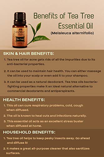 Tea Tree a nature-inspired earthly aroma relieves anxiety and stress is loaded with a plethora of benefits in a multitude of aspects. Ancient Living Tea Tree Essential Oil is a heavenly aromatic essential oil that is prepared through natural steam distillation of organic tea tree leaves. It serves as an outstanding essential oil for aromatherapy and acts as a wonderful stress buster when diffused in your surroundings. Its antibacterial properties keep the germs and bacteria away. A few drops of this essential oil added in your perfume keeps away the bad odour has leaves a long lasting fragrance. It improves blood circulation and skin complexion when used as massage oil. It treats acne and maintains the oil levels of your skin. Strong and smooth hair can be obtained when it is added to your shampoos or carrier oil. Tea tree essential oil is a wonderful nature inspired essential oil which can be used for aromatherapy and a number of other uses for your households.