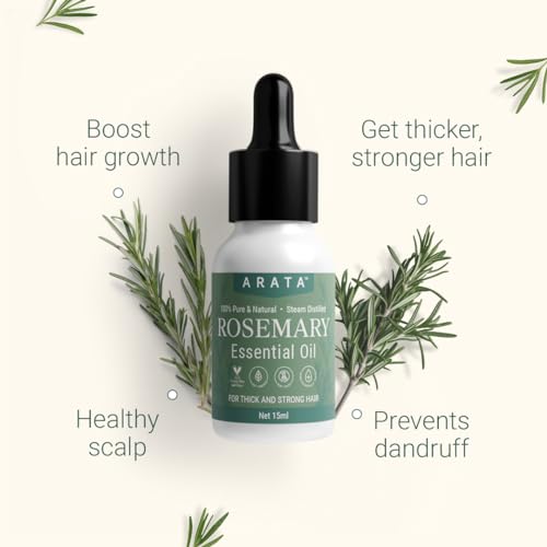 Arata Undiluted Rosemary Essential Oil For Hair Growth, Hair Fall Control & Nourishment | 100% Natural and Pure Blend | Strengthens Hair & Balances Scalp | 15ML