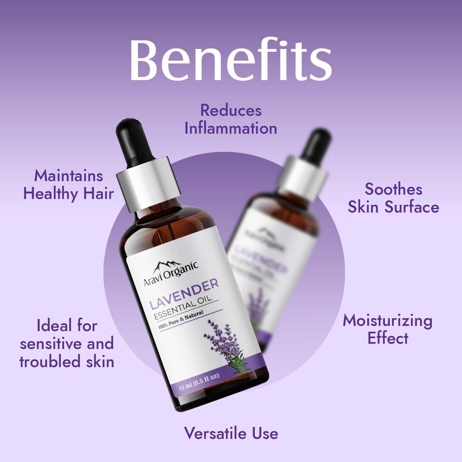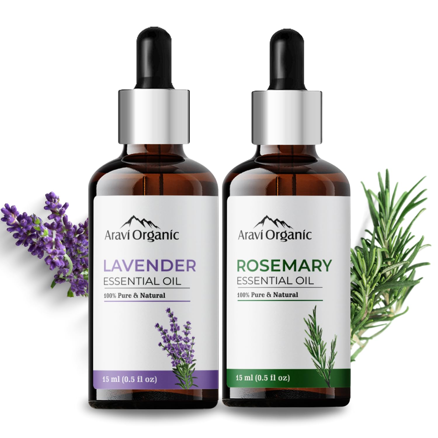 Aravi Organic 100% Pure Lavender And Rosemary Essential Oil For Hair Growth Hair Fall Control And Skin Care - For Women and Men -15 ml Each