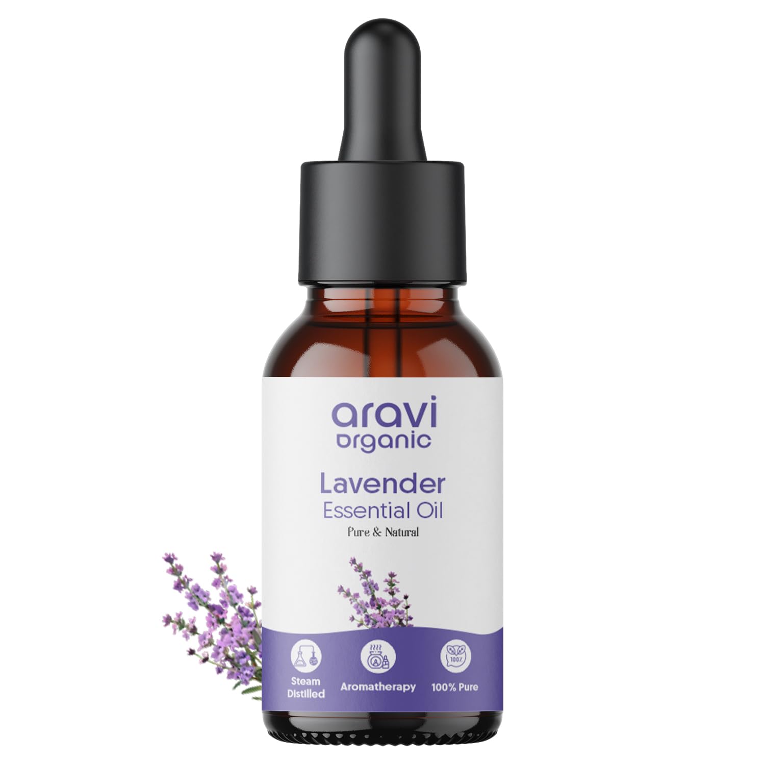 Aravi Organic Lavender Essential Oil For Healthy Hair & Growth Skin Hair Fall Control and Sleep - 100% Pure Natural and Undiluted - 15 ml