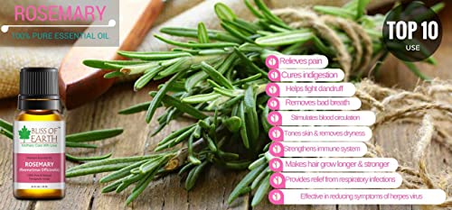 POWERFUL AND PURIFYING: Bliss of earth rosemary oil is widely accepted and used by most natural healthcare practitioners and aroma therapists. It's known to elevate the spirits and neutralize stress and anxiety. This oil is excellent to rejuvenate the sen