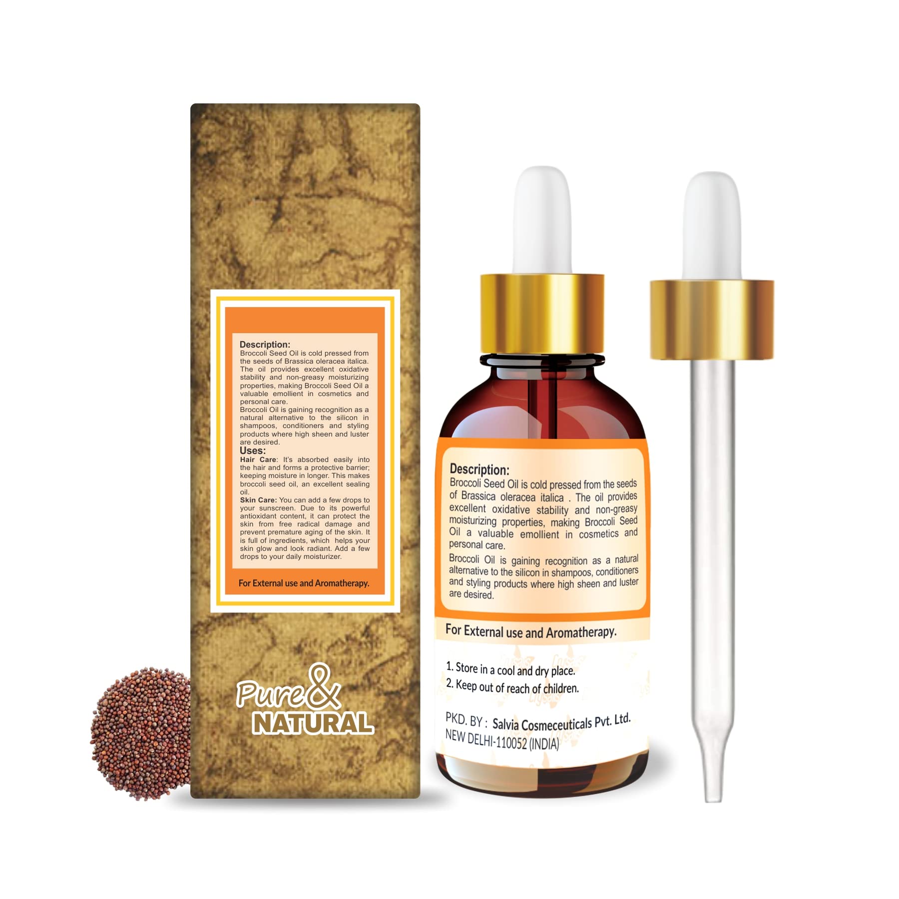 CONTENTS: Steam Distilled cold pressed oil from seed of the Brassica oleracea var. Italica