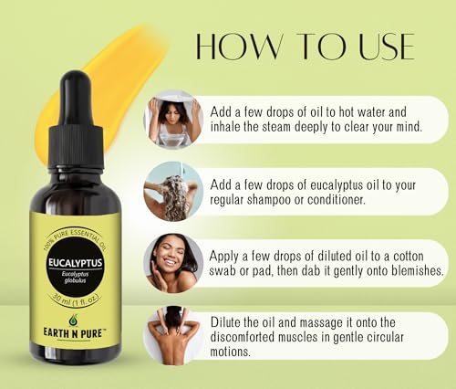 Earth N Pure Eucalyptus Essential Oil (Nilgiri Oil) Undiluted, Natural, Therapeutic Grade 30 ml