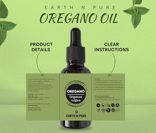 • Natural & Therapeutic: Earth N Pure Oregano Oil is therapeutic grade pure and undiluted oil steam distilled from Origanum vulgare