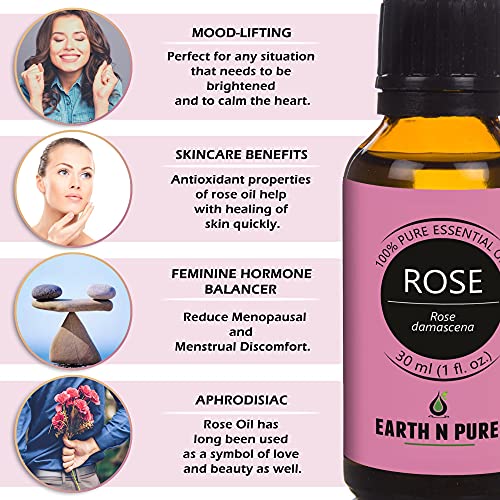 • Natural & Therapeutic: Earth N Pure Rose Oil is therapeutic grade pure and undiluted oil steam distilled from rose petals.