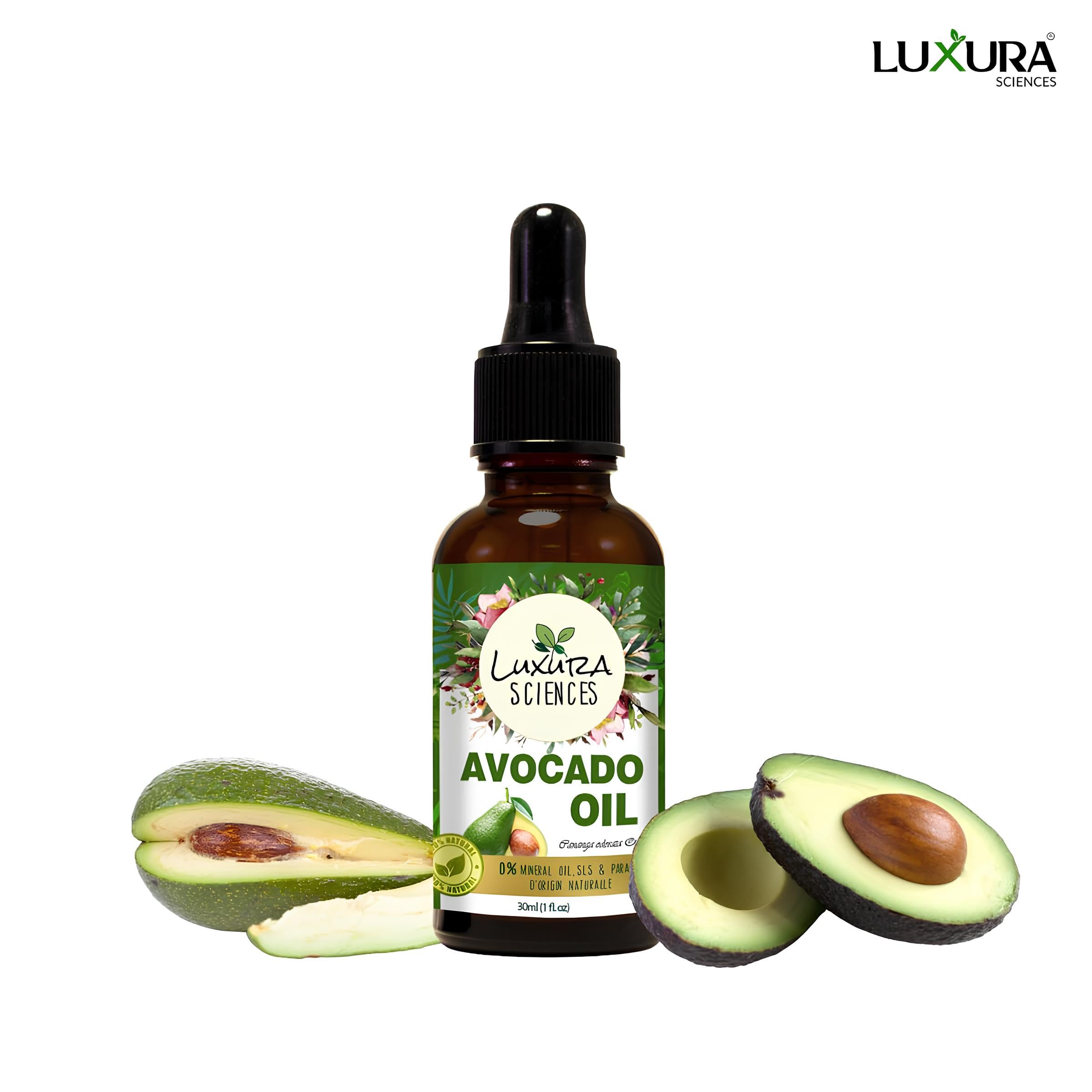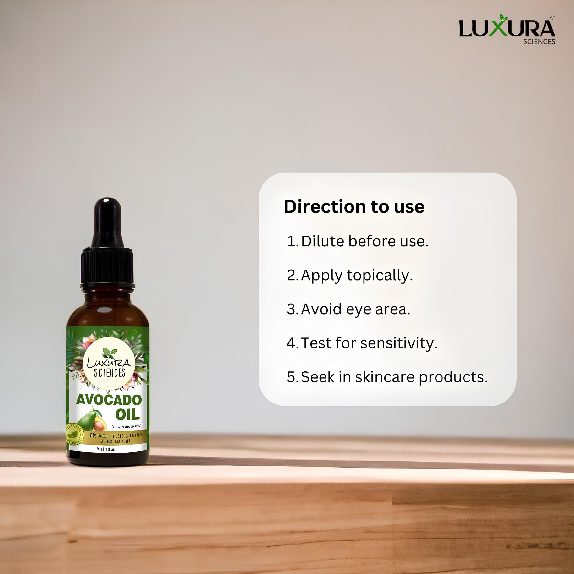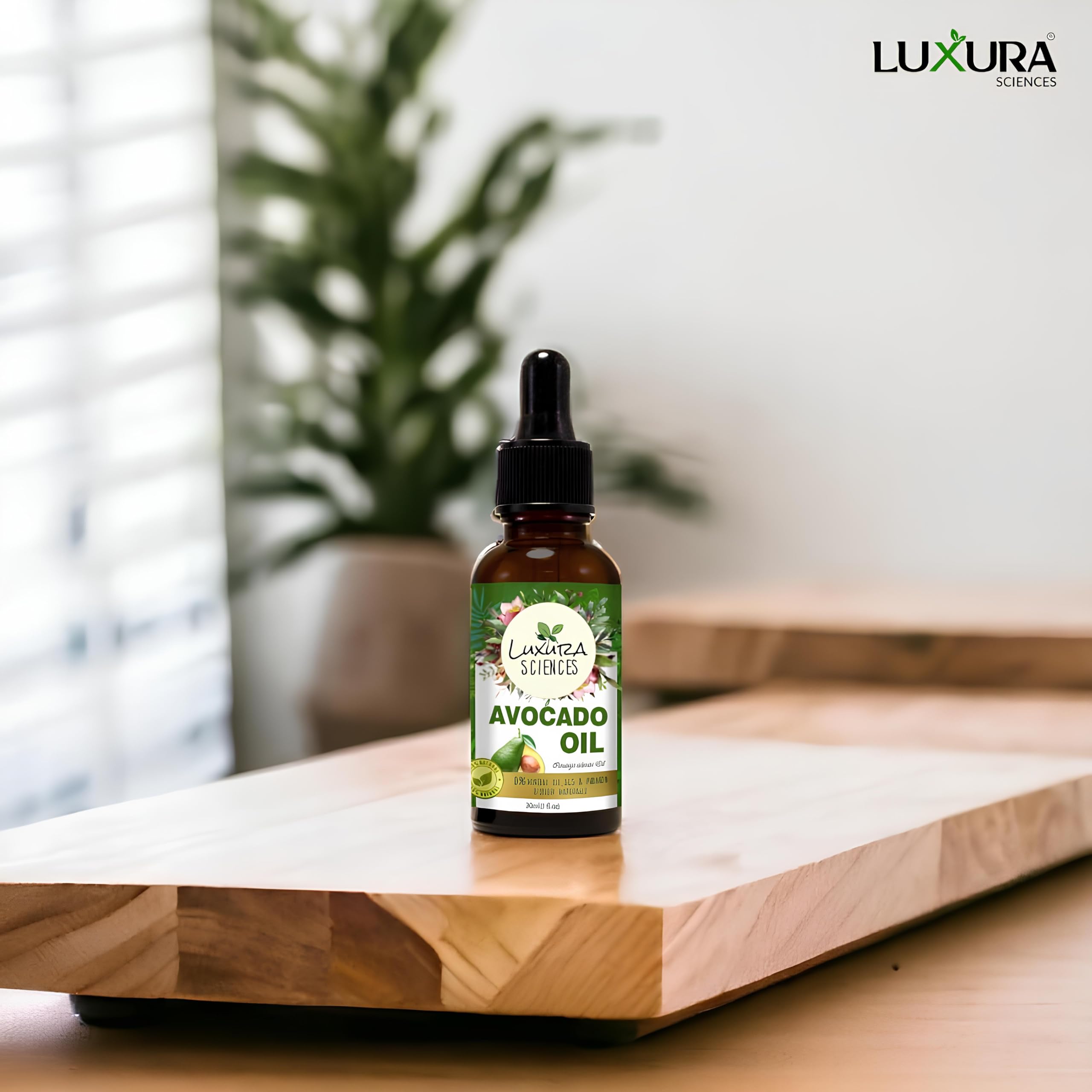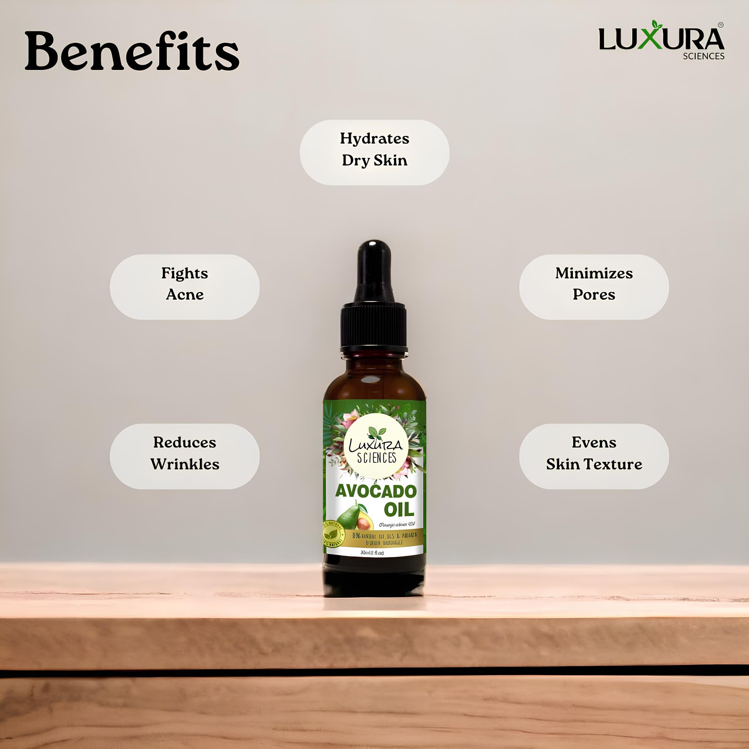 Luxura Sciences Avocado Oil - Deep Tissue Moisturizer for Hair Face & Skin - Rich in Retinol & Vitamin E to Reduce Wrinkles - Supports Skin Rejuvenation & Hair Growth (30 ML)