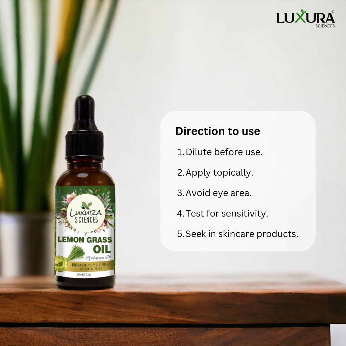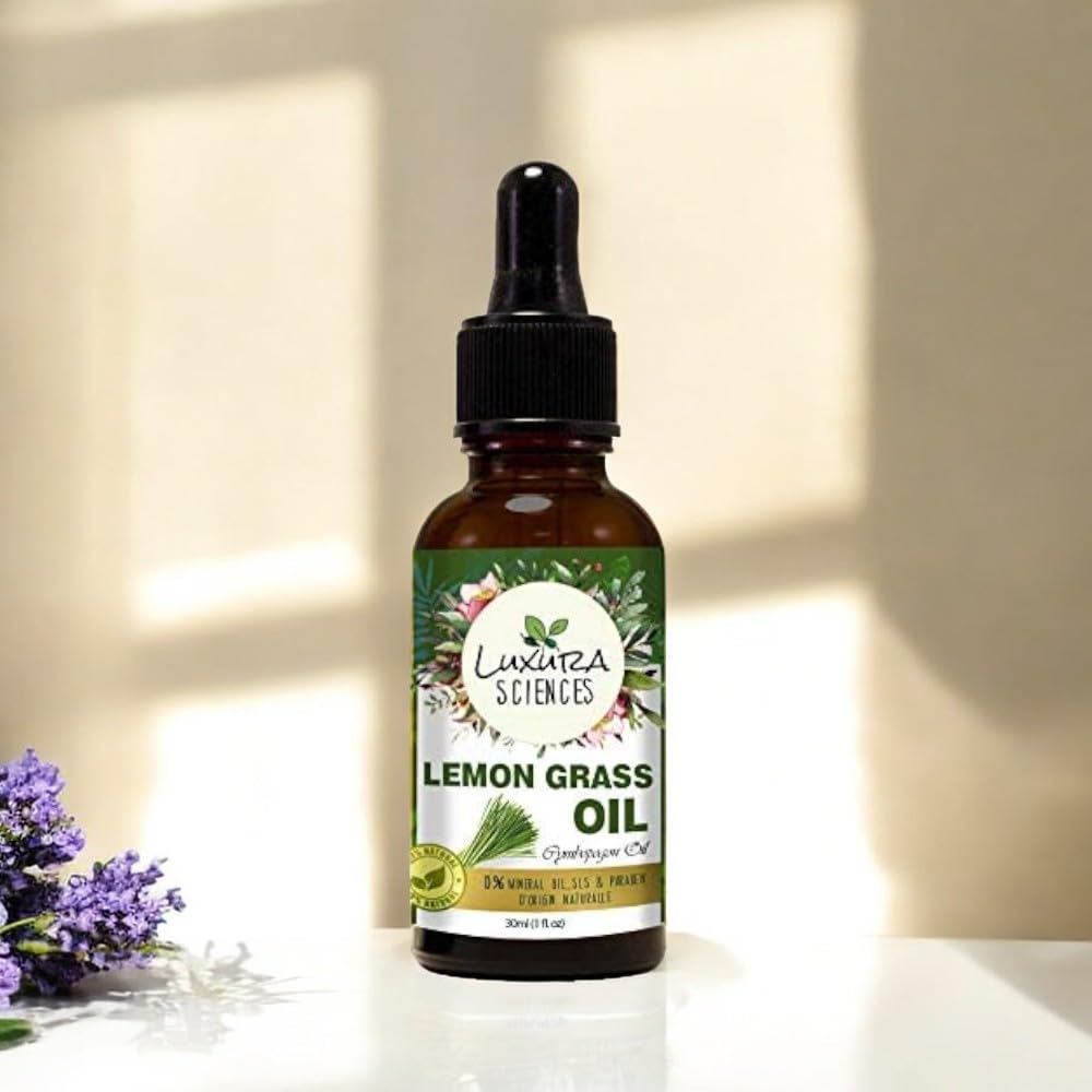 Luxura Sciences Lemongrass Essential Oil 30ML Steam-Distilled & Therapeutic-Grade Refreshing Aroma for Diffuser Skin & Hair Natural Home Freshener With Precision Dropper