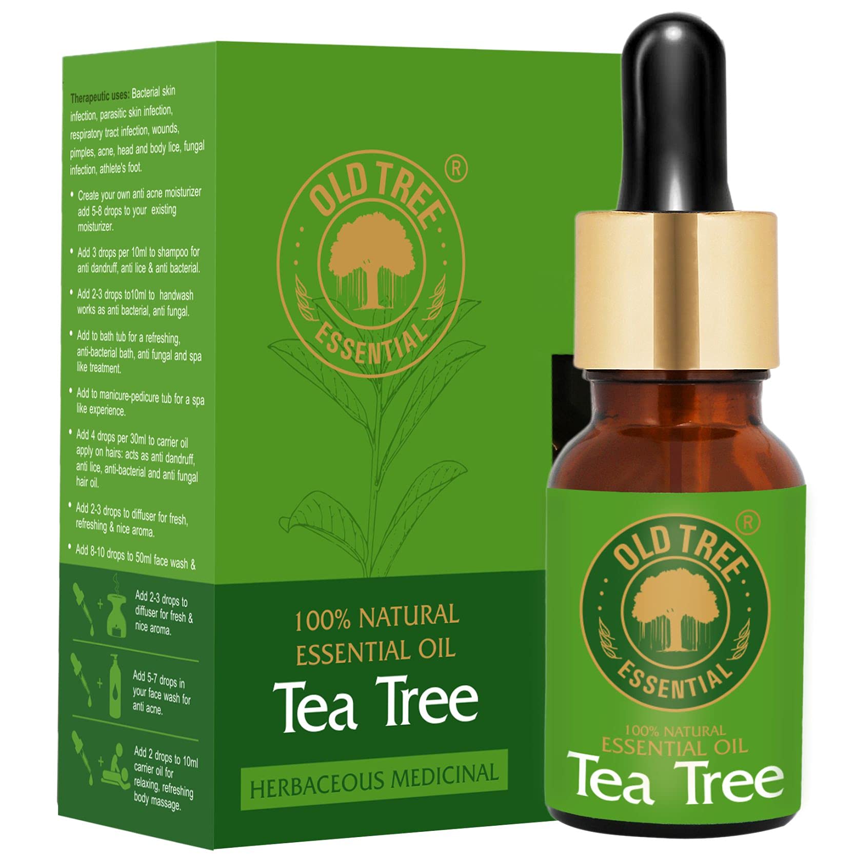 HomeHealth & PersonalAroma ProductsEssential OilsOld Tree Pure & Natural Tea Tree Essential Oil (15ml) - for Skin Diffusers Hair Body Acne Nail care - Undiluted Essential Oil with Dropper for Aroma Therapy and Stress Relief