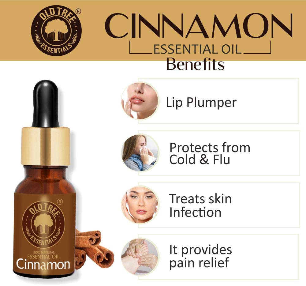 Old Tree Pure Cinnamon Essential Oil (15ml) - for Skin Reduce Dandruff Hair Growth - Undiluted and Natural Dalchini Massage Oil With Glass Dropper for Relaxation and Aromatherapy
