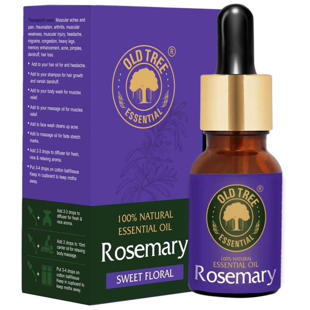 HomeHealth & PersonalAroma ProductsEssential OilsOld Tree Rosemary Essential Oil for Hair Growth for Women & Men (15ml) - Pure and Natural Oil with Dropper for Skin Body Diffuser Aroma Therapy & Relaxation
