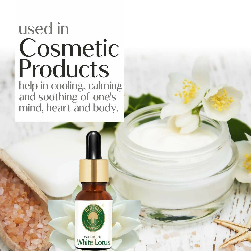 Old Tree White Lotus Essential OilAbout the product:White lotus oil is often used in massage therapy for its relaxing and soothing properties. Mix a few drops of white lotus oil with a carrier oil and use it to massage soreWhite lotus oil is also used in hair care products for its ability to nourish and strengthen hair Add a few drops of white lotus oil to your shampoo and apply it to your hairWhite lotus oil is known for its moisturizing and skin-healing properties, making it a popular ingredient in skincare products. Add a few drops of white lotus oil to your moisturizerLegal Disclaimer: Product images are for illustrative purposes only. Images/packaging/ labels may vary from time to time due to changes made by the manu