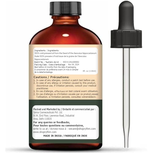 Organic Zing Horse Chestnut (Aesculus hippocastanum) Oil | Pure & Natural Essential Oil for Skincare Hair Care & Massage - 118ml/3.99fl oz