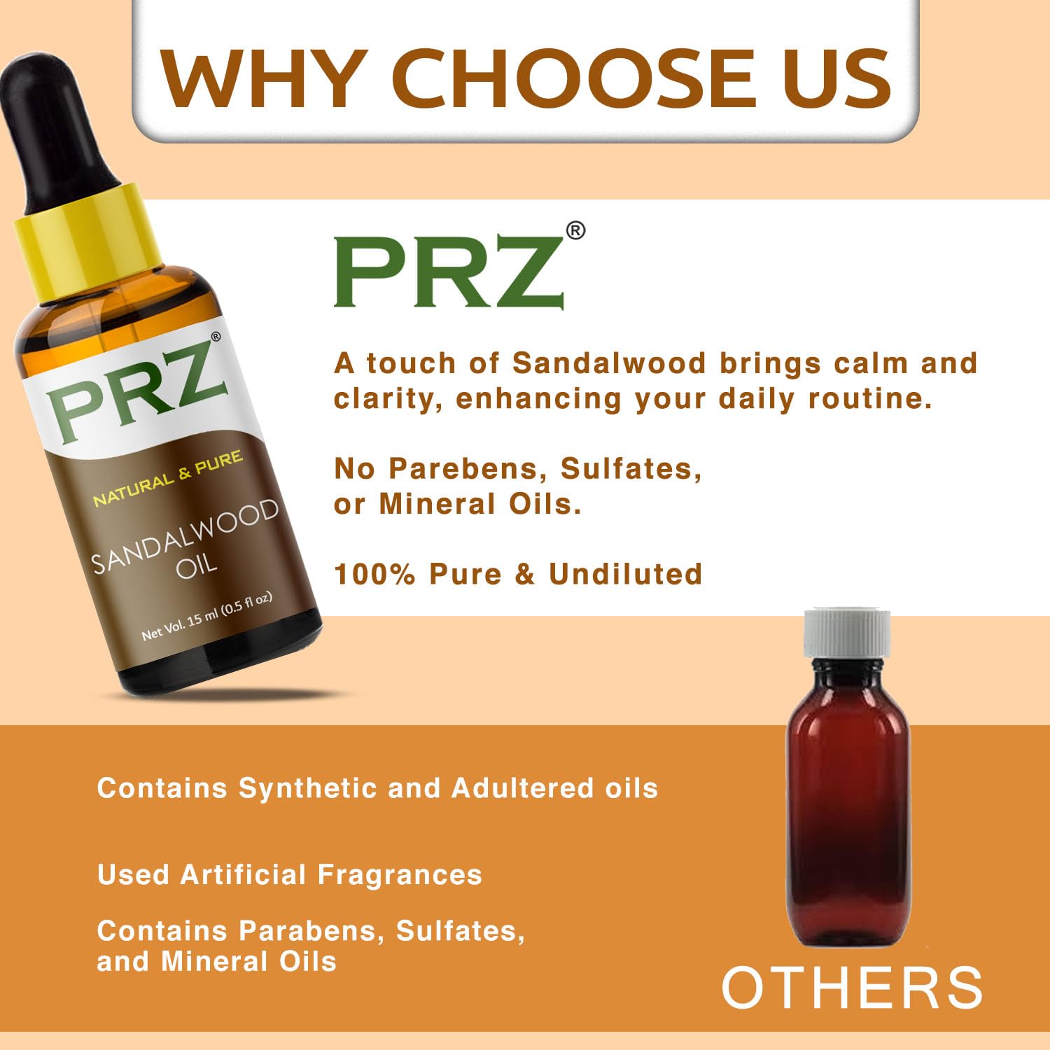 PRZ Sandalwood Essential Oil is extracted exclusively from sandalwood wood chips using a meticulous process ensuring each drop is free from additives or synthetic substances. Perfect for creating bespoke natural perfumes and suitable for professional aromatherapy and massage therapies.