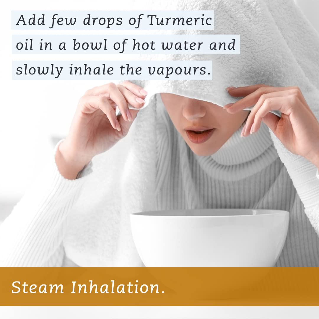 • Turmeric oil has a spicy and vibrant strong aroma. One of the best ways to achieve all the benefits of Turmeric Oil is to use it in an aroma diffuser. Breathing aroma of the turmeric scented oil gives calming relaxing and can help soothe stuffy noses.