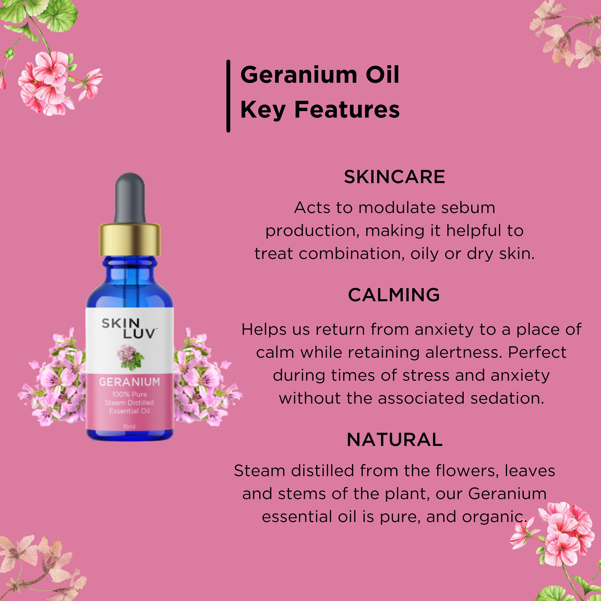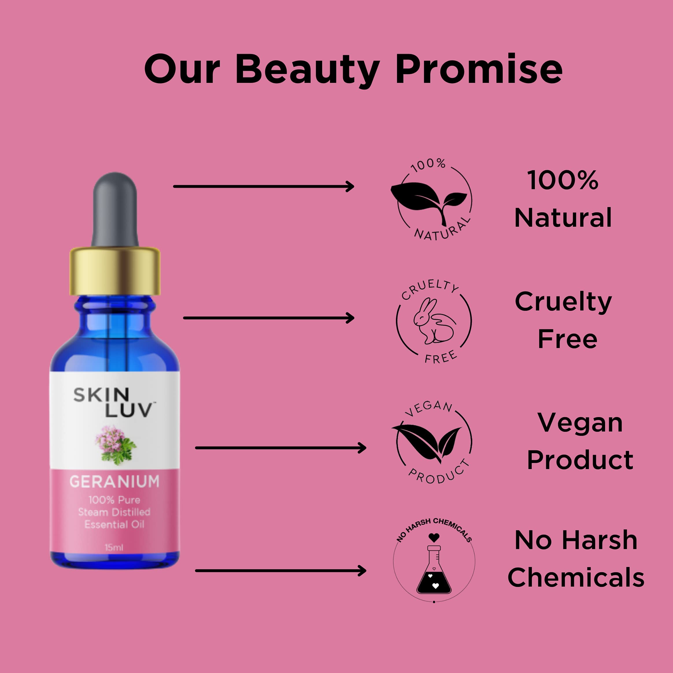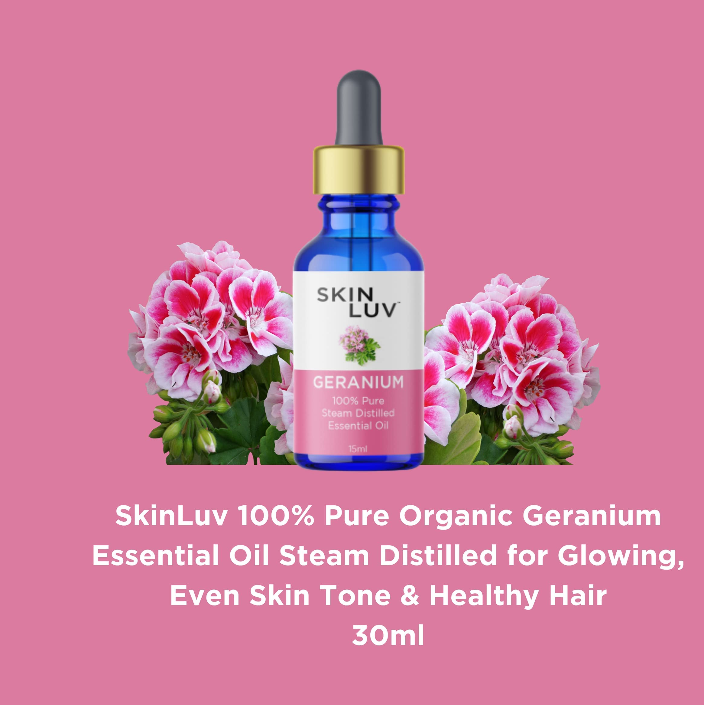 SKINLUV 100% Pure & Organic Geranium Essential Oil Steam Distilled Essential Oil for Glowing Even Skin Tone & Healthy Hair Fragrance Oil Diffuser Oil 30 ml