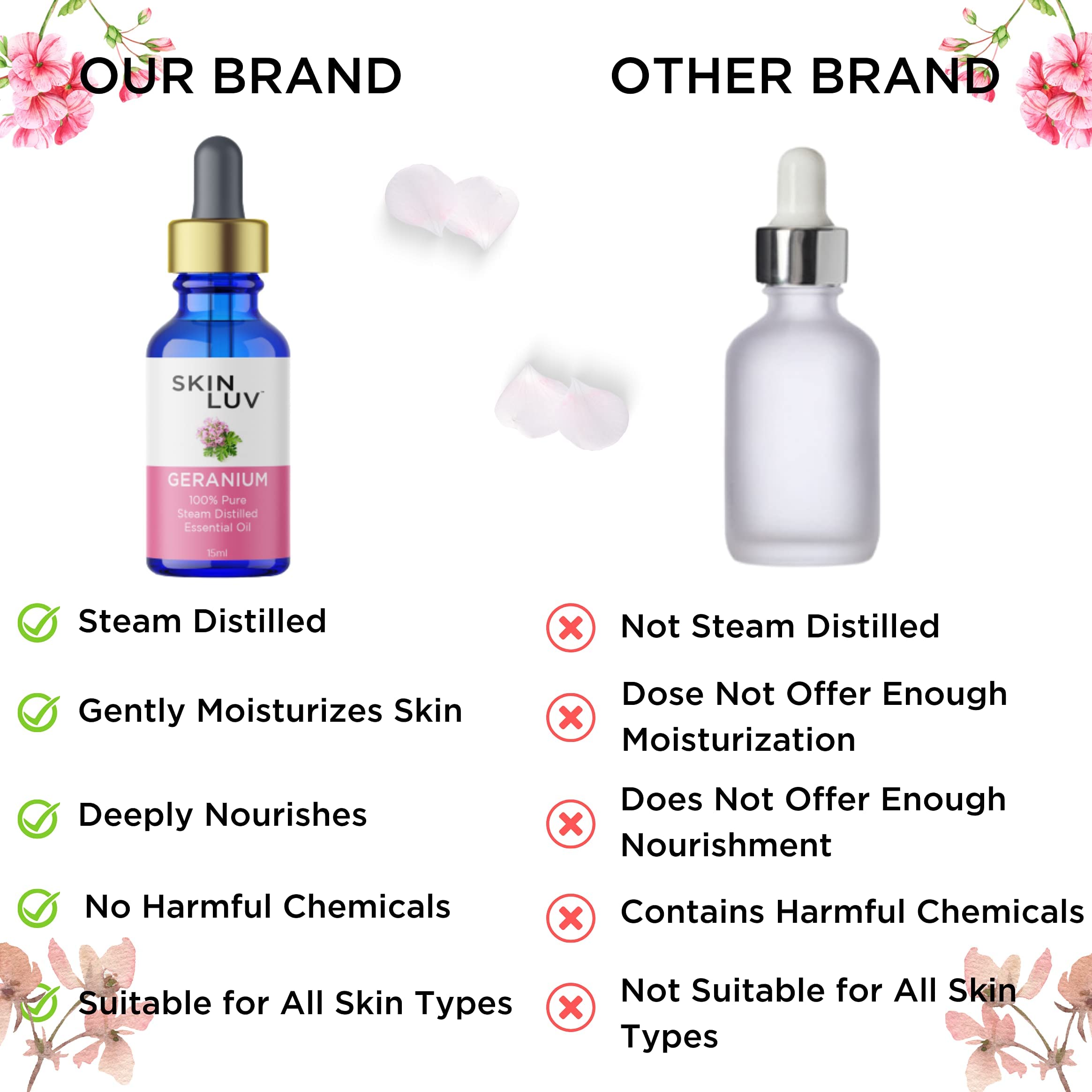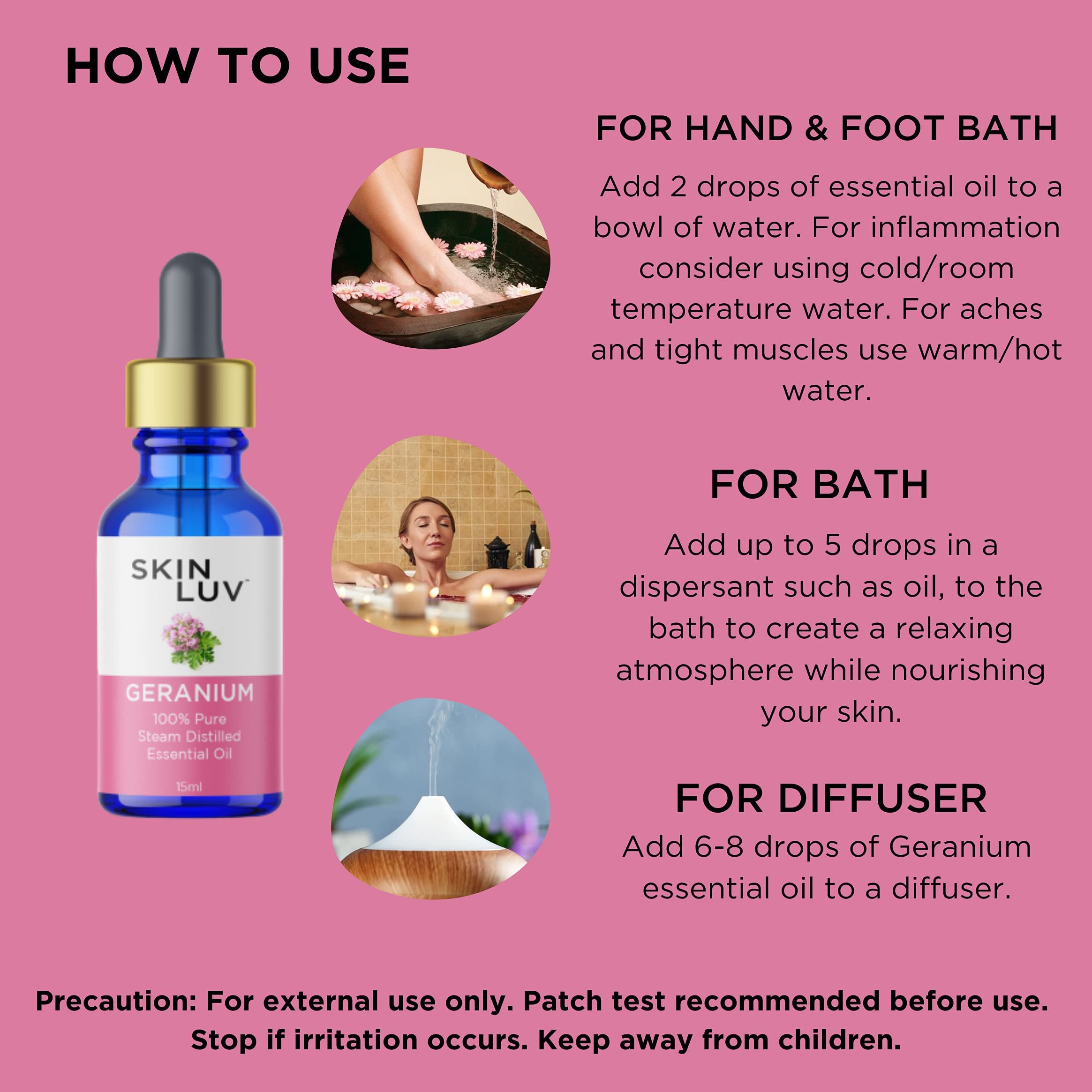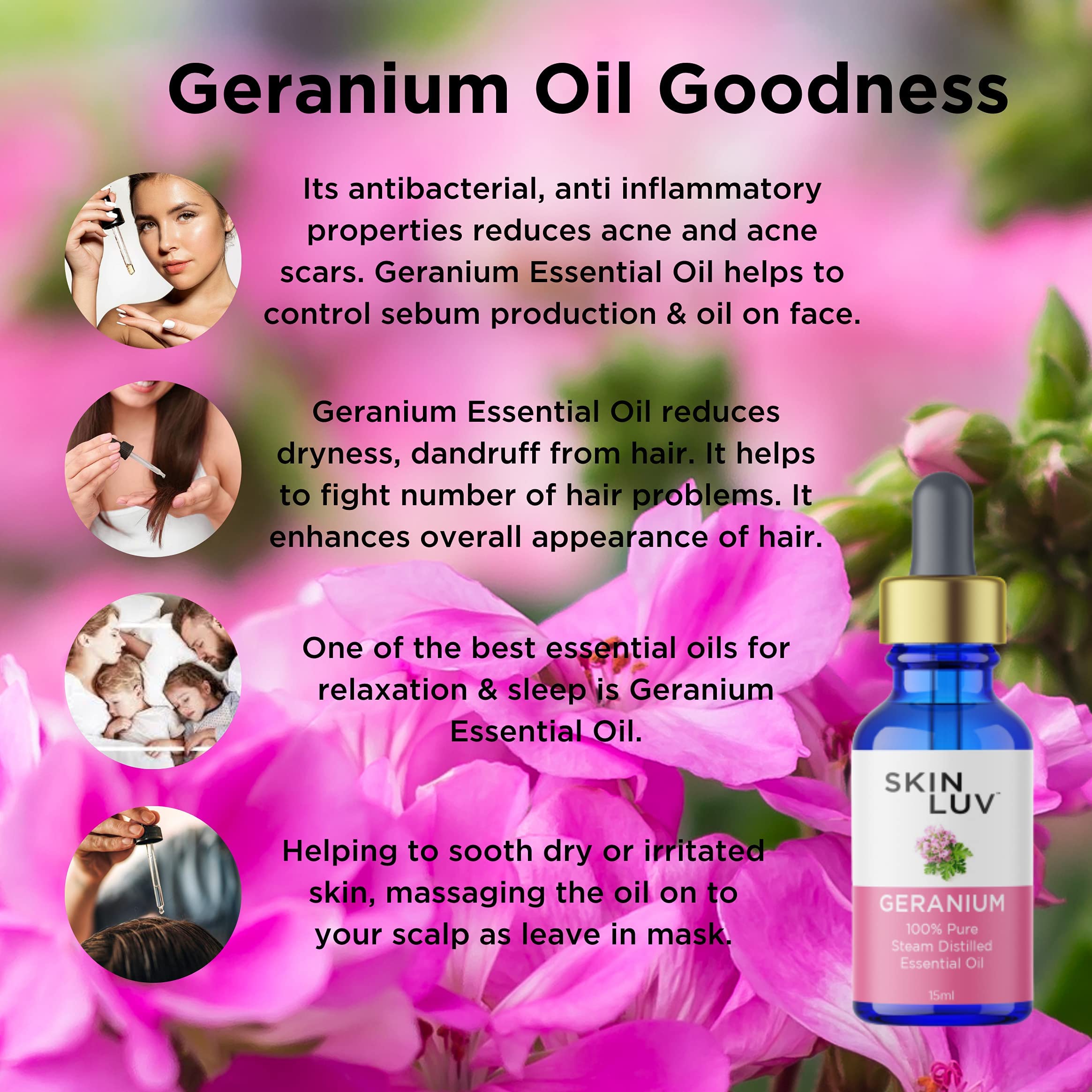 SKINLUV 100% Pure & Organic Geranium Essential Oil Steam Distilled Essential Oil for Glowing Even Skin Tone & Healthy Hair Fragrance Oil Diffuser Oil 30 ml