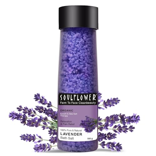 Soulflower Epsom Lavender Bath Salt for Body & Foot Spa, Calming, Relaxing, Muscle Pain Relief, Aromatherapy | Pure & Natural | Sea Salt, Lavender Essential Oil & Vitamin E, 500g (Pack of 1)