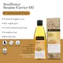 Soulflower Sesame Carrier Oil is rich in beta carotene Vitamins D C E antioxidants and essential fatty acids. Traditionally known for its therapeutic skin and hair care applications Soulflower Coldpressed Sesame Carrier Oil is a perfect oil remedy for all skin and hair types. With richness of antioxidants and antiviral properties this oil effectively nourishes skin and heals sunburn. With high omega-6 contents sesame oil tightens facial skin making it soft supple and glowing. This oil controls premature greying promotes hair growth protects hair from harmful sunlight soothes & conditions dry hair and clears dandruff.