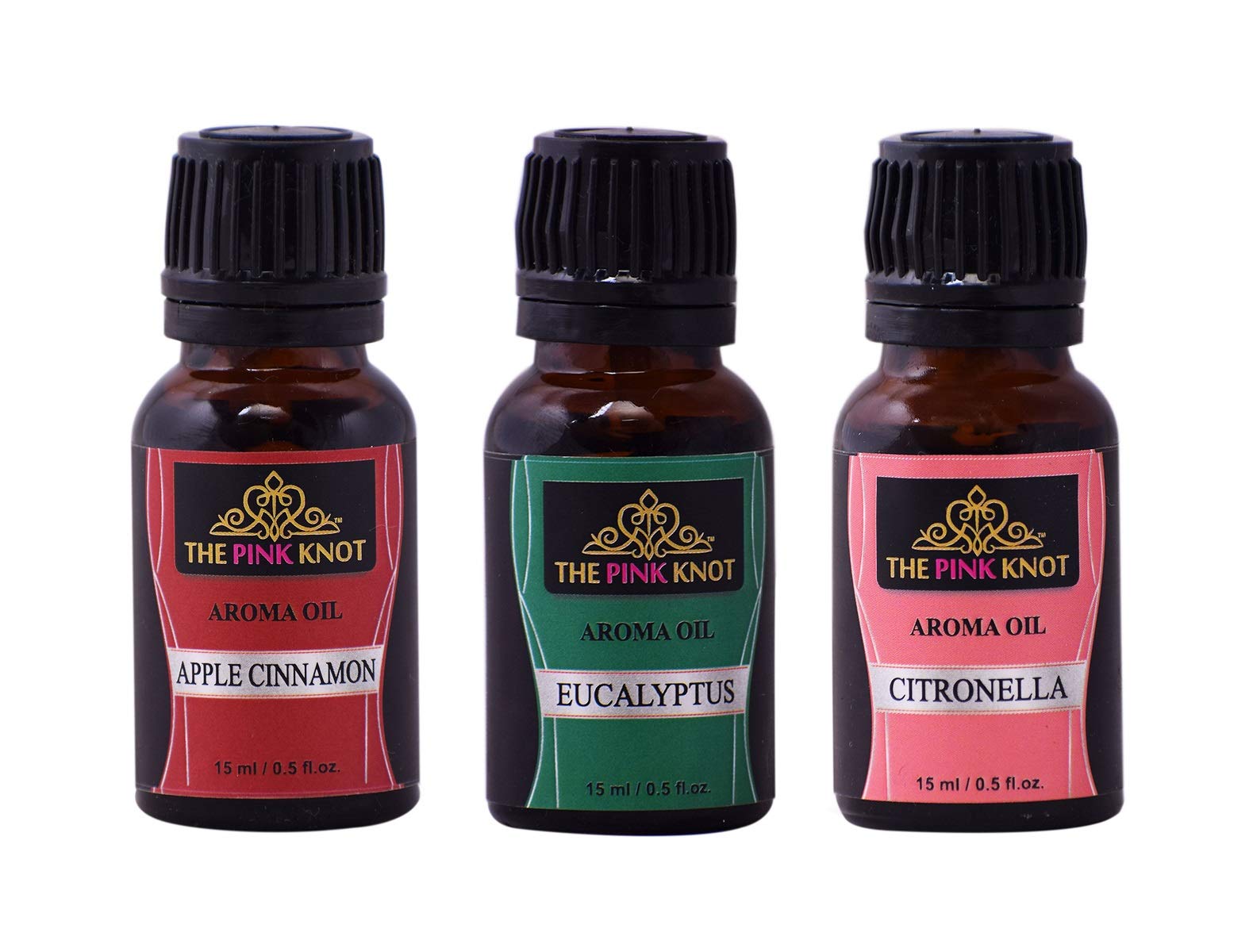 The Pink Knot Apple Cinnamon Eucalyptus & Citronella set of three aromatic fragrant diffuser oil (15ml each)