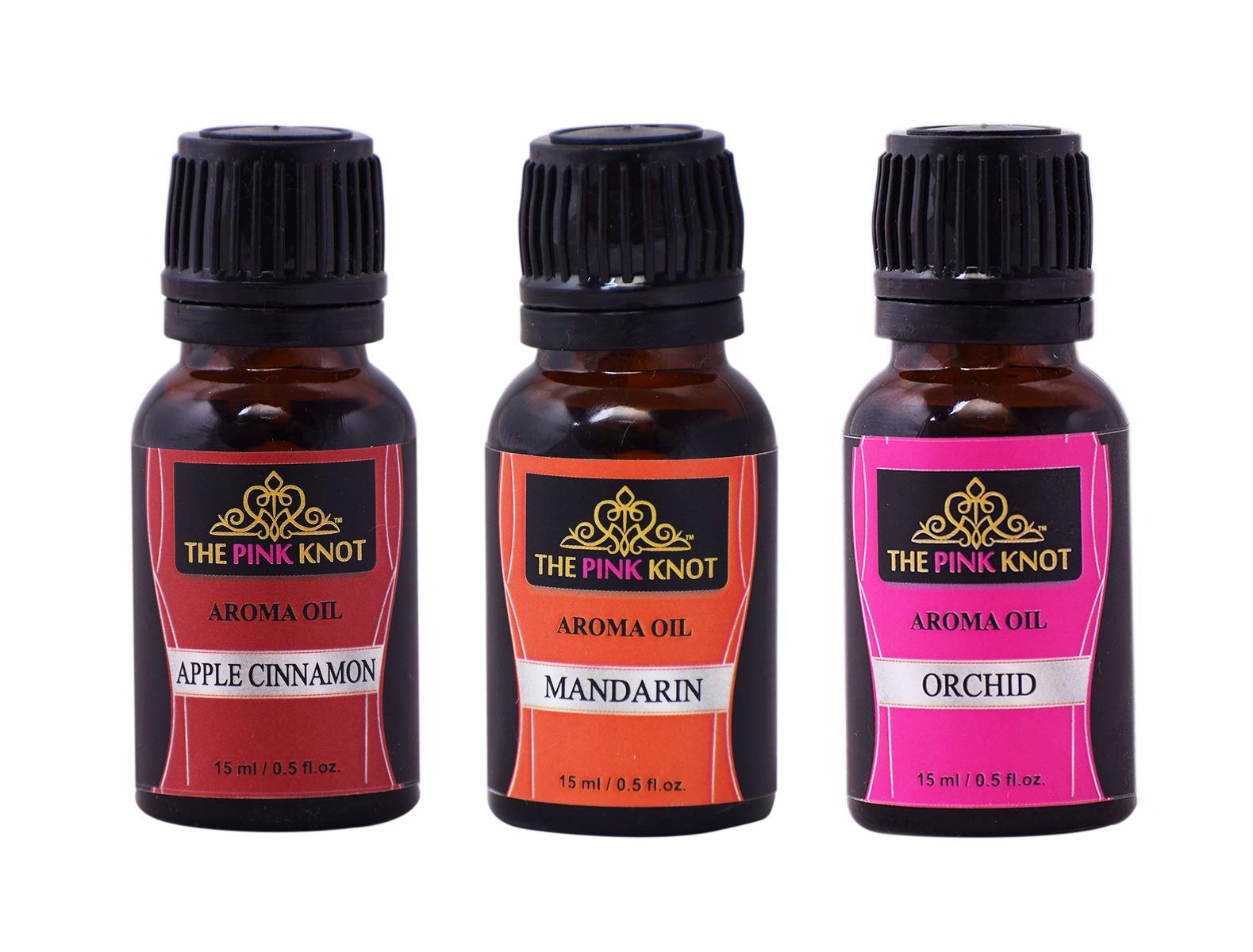 The Pink Knot Apple Cinnamon Mandarin & Orchids set of three aromatic fragrant diffuser oil (15ml each)