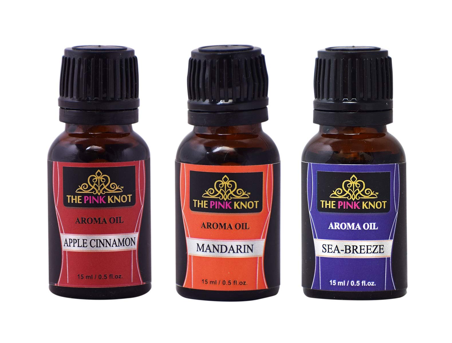 The Pink Knot Apple Cinnamon Mandarin & Sea Breeze set of three aromatic fragrant diffuser oil (15ml each)