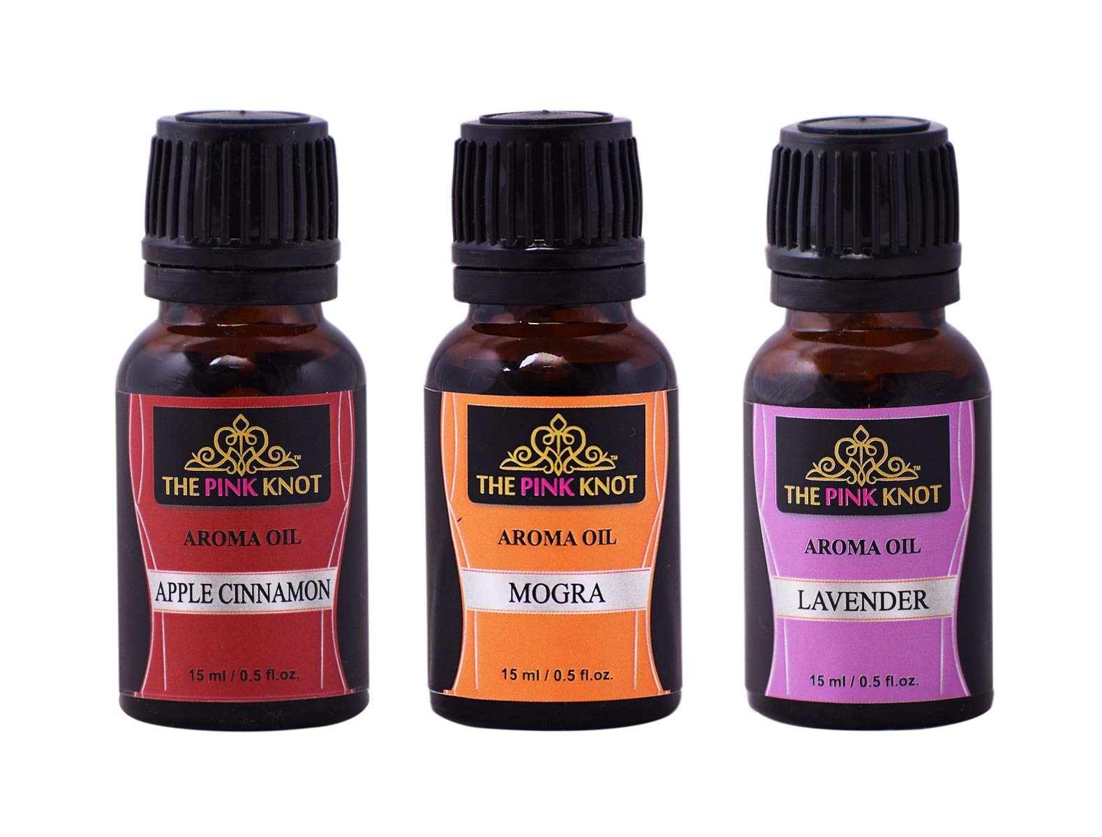 The Pink Knot Apple Cinnamon Mogra & Lavender set of three aromatic fragrant diffuser oil(15ml each)