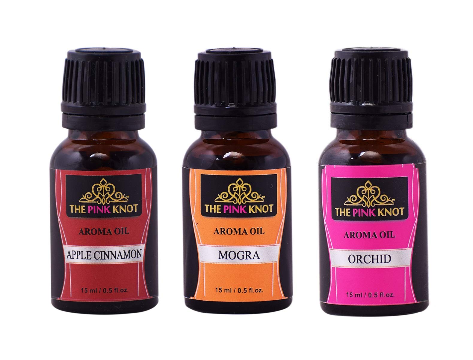 The Pink Knot Apple Cinnamon Mogra & Orchids set of three aromatic fragrant diffuser oil(15ml each)