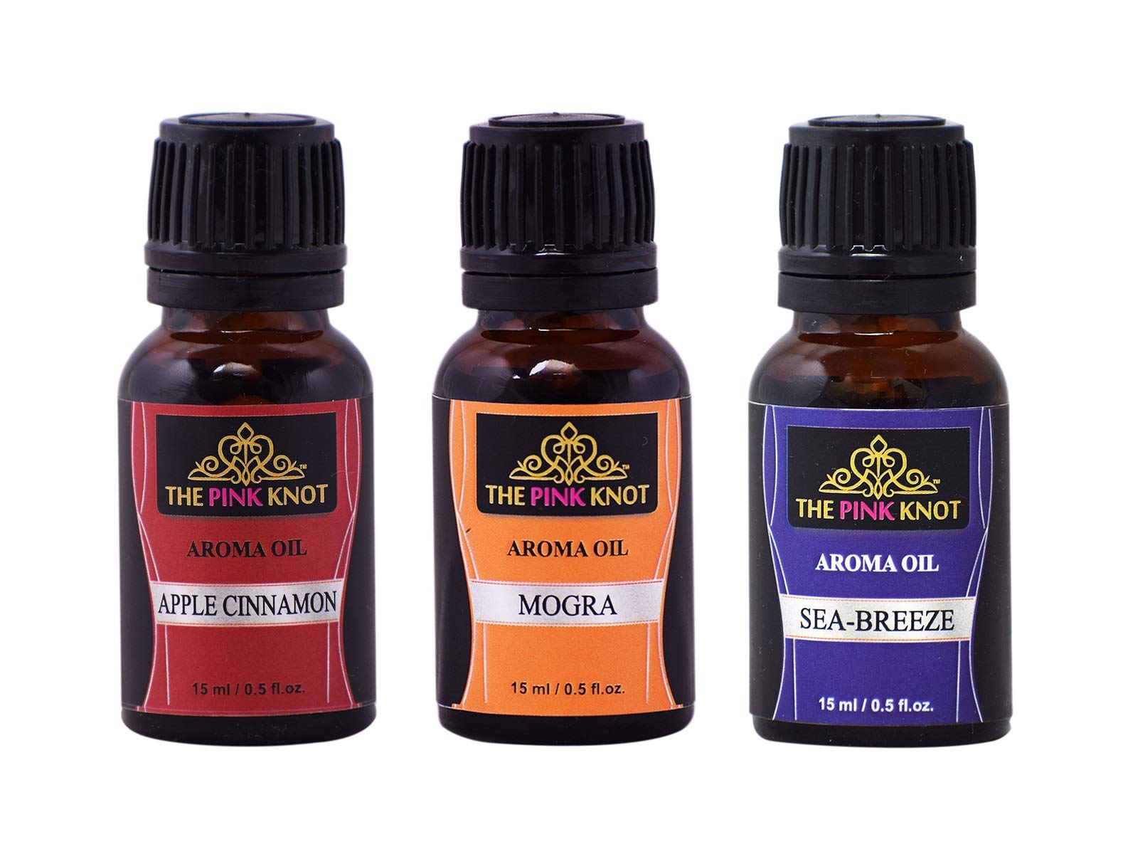 The Pink Knot Apple Cinnamon Mogra & Sea Breeze set of three aromatic fragrant diffuser oil(15ml each)