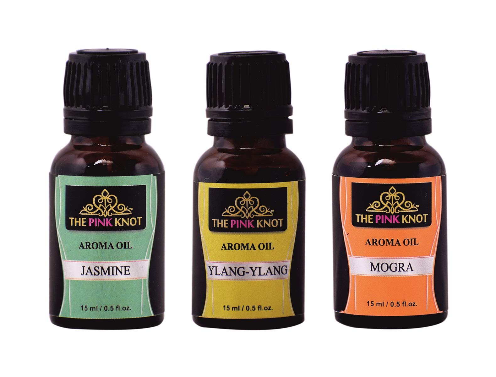THE PINK KNOT Jasmine Ylang-Ylang & Mogra set of three aromatic fragrant diffuser oil (15ml each)
