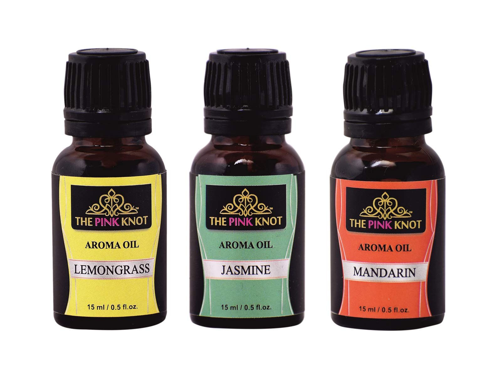 THE PINK KNOT Lemongrass Jasmine & Mandarin set of three aromatic fragrant diffuser oil (15ml each)