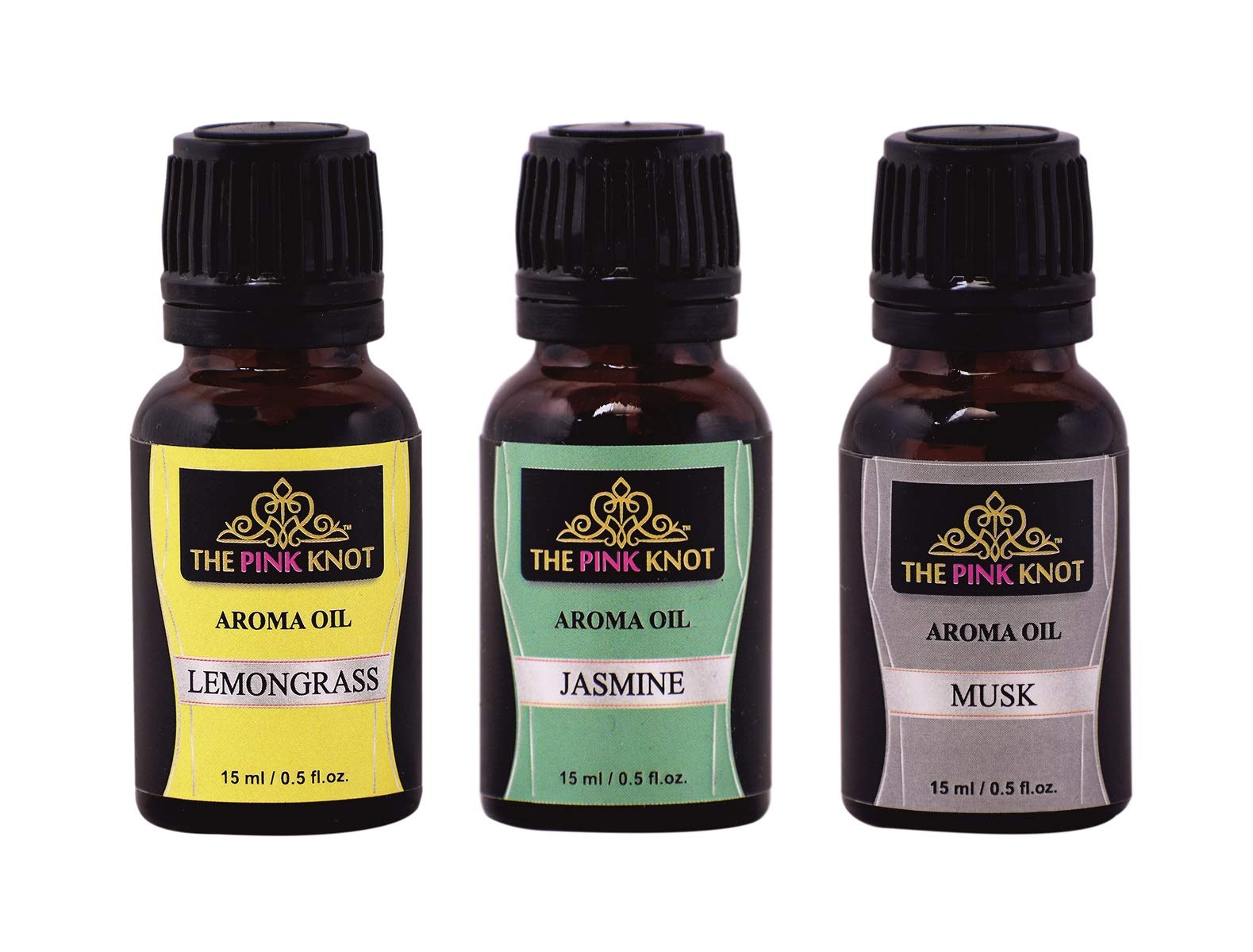 THE PINK KNOT Lemongrass Jasmine & Musk set of three aromatic fragrant diffuser oil (15ml each)