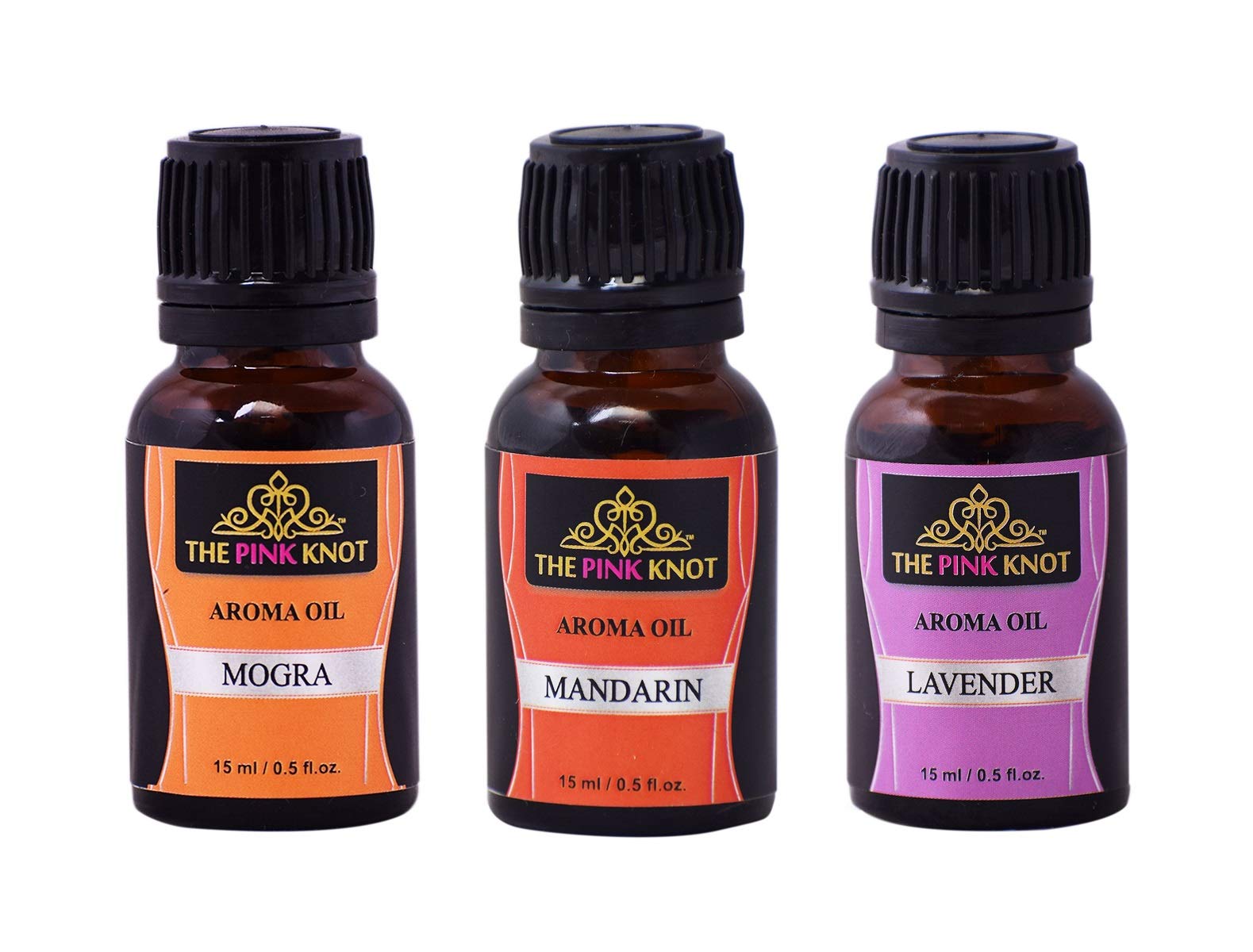 The Pink Knot Mogra Mandarin & Lavender set of three aromatic fragrant diffuser oil(15ml each)
