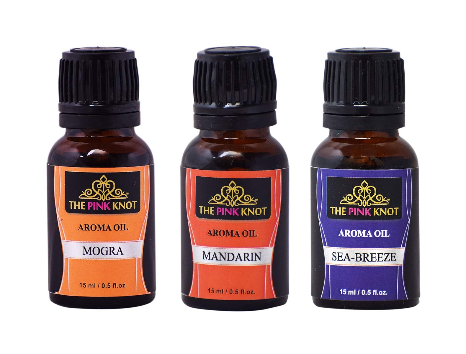 The Pink Knot Mogra Mandarin & Sea Breeze set of three aromatic fragrant diffuser oil(15ml each)
