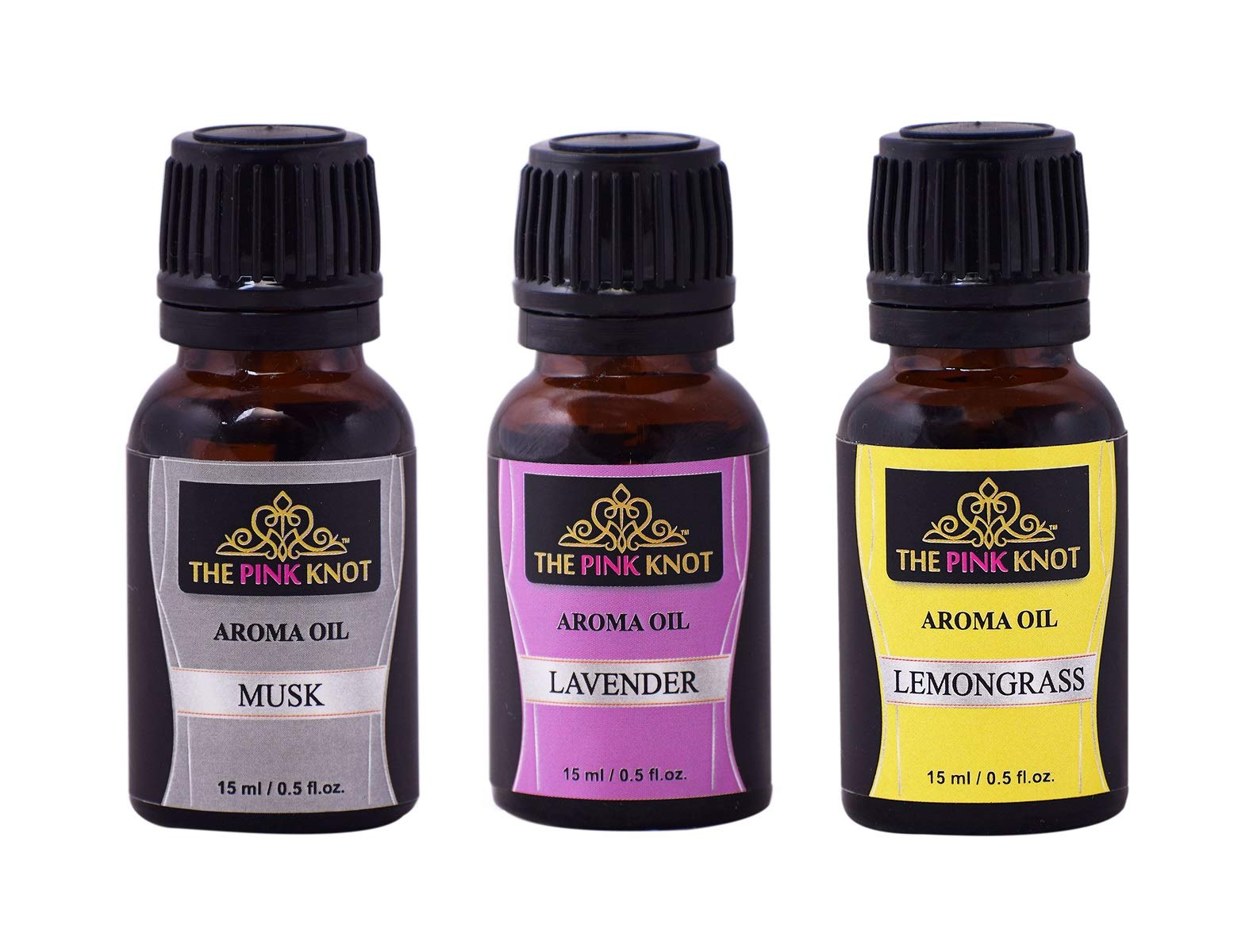 The Pink Knot Musk Lavender & Lemongrass set of three aromatic fragrant diffuser oil (15ml each)