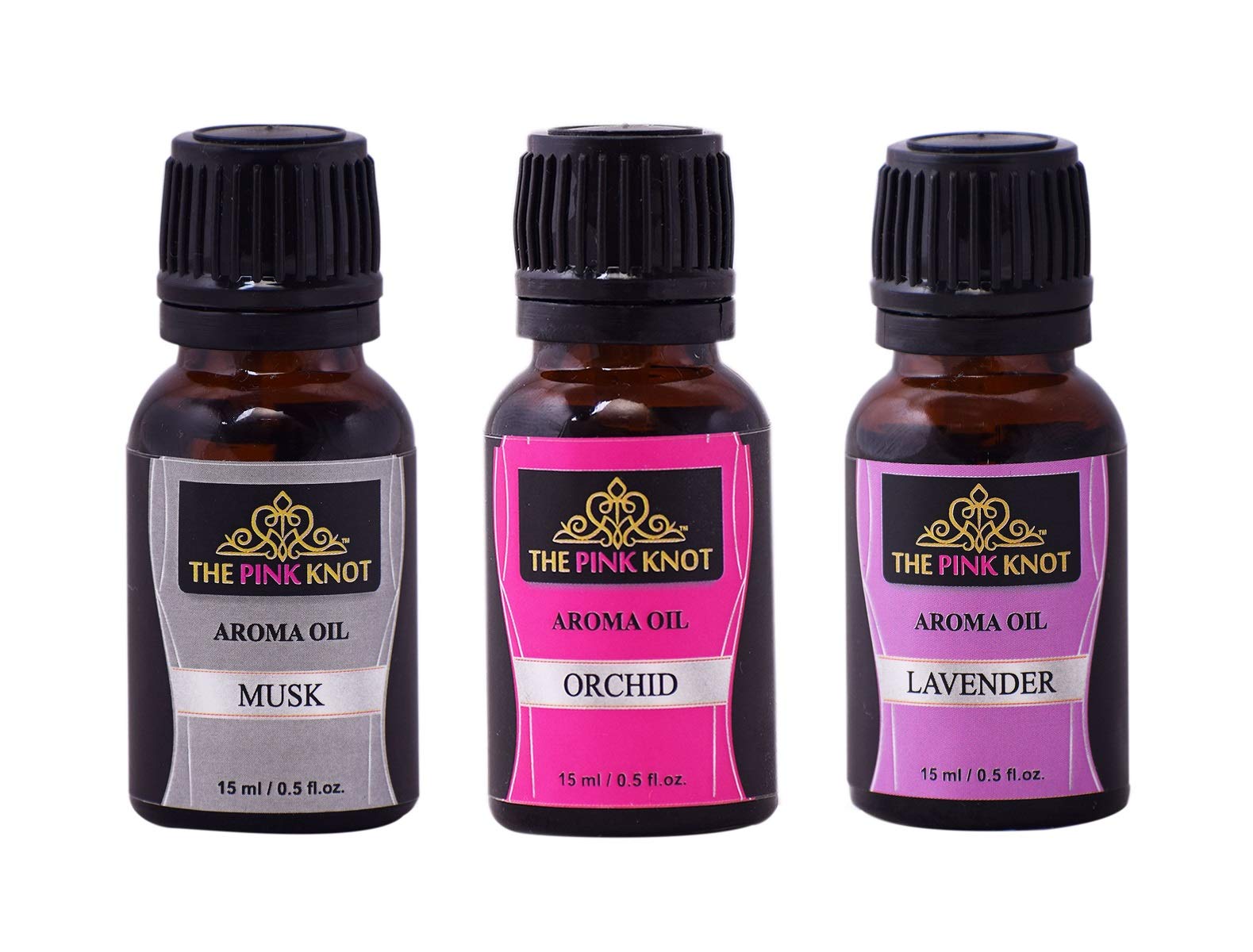 The Pink Knot Musk Orchids & Lavender set of three aromatic fragrant diffuser oil (15ml each)