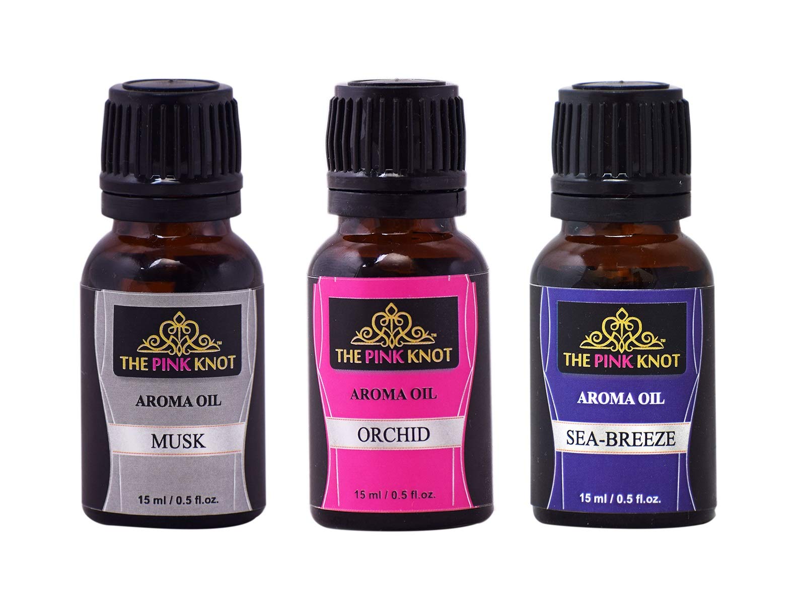 The Pink Knot Musk Orchids & Sea Breeze set of three aromatic fragrant diffuser oil (15ml each)