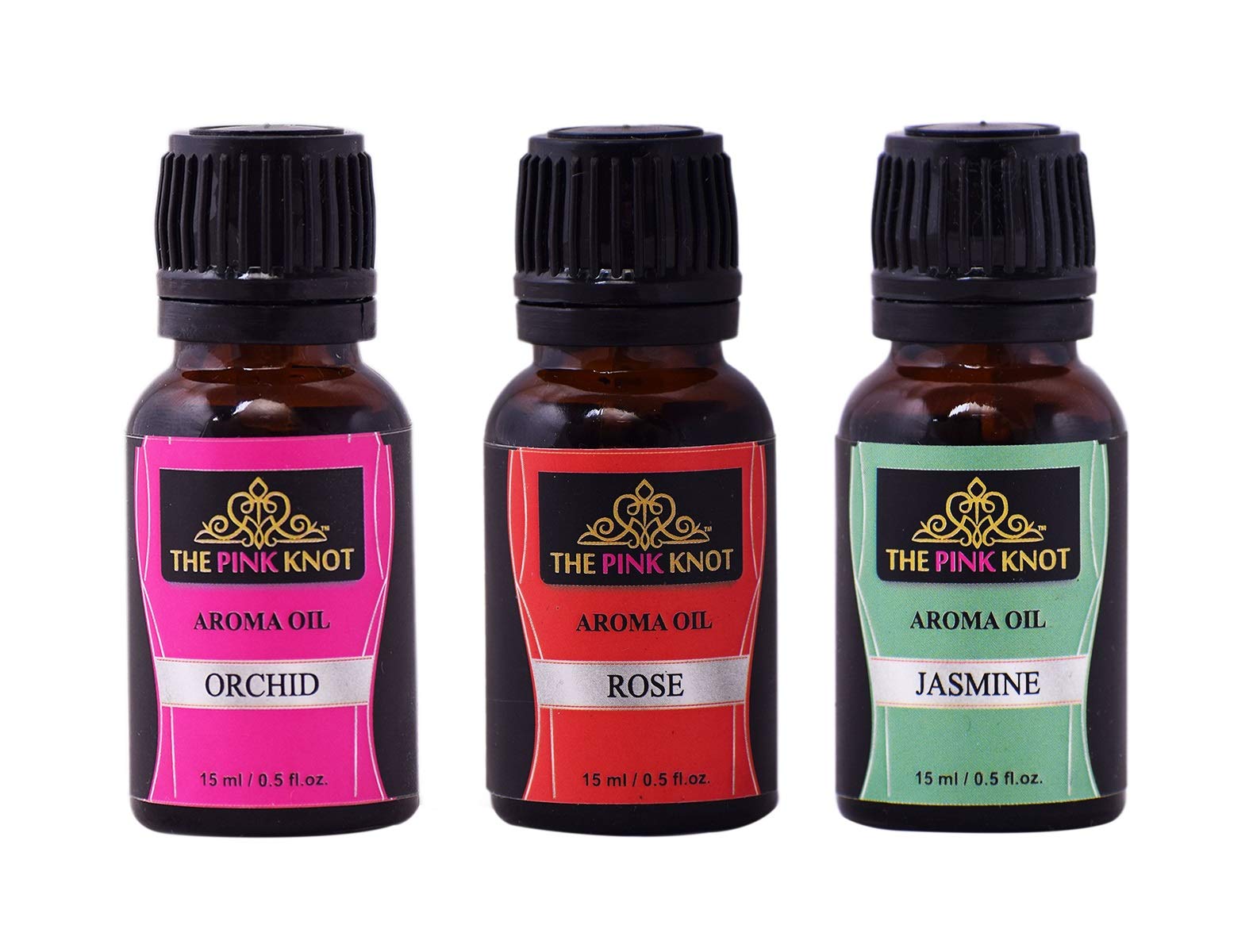 The Pink Knot Orchids Rose & Jasmine set of three aromatic fragrant diffuser oil (15ml each)