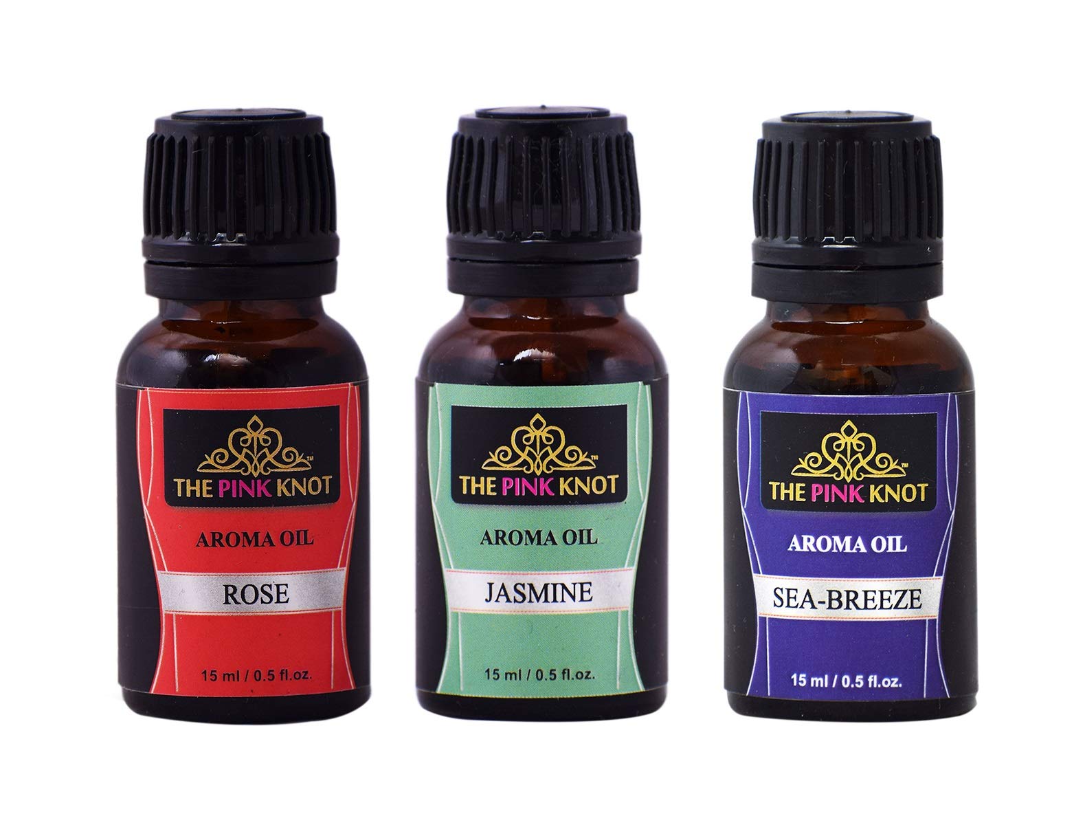 The Pink Knot Rose Jasmine & Sea Breeze set of three aromatic fragrant diffuser oil (15ml each)
