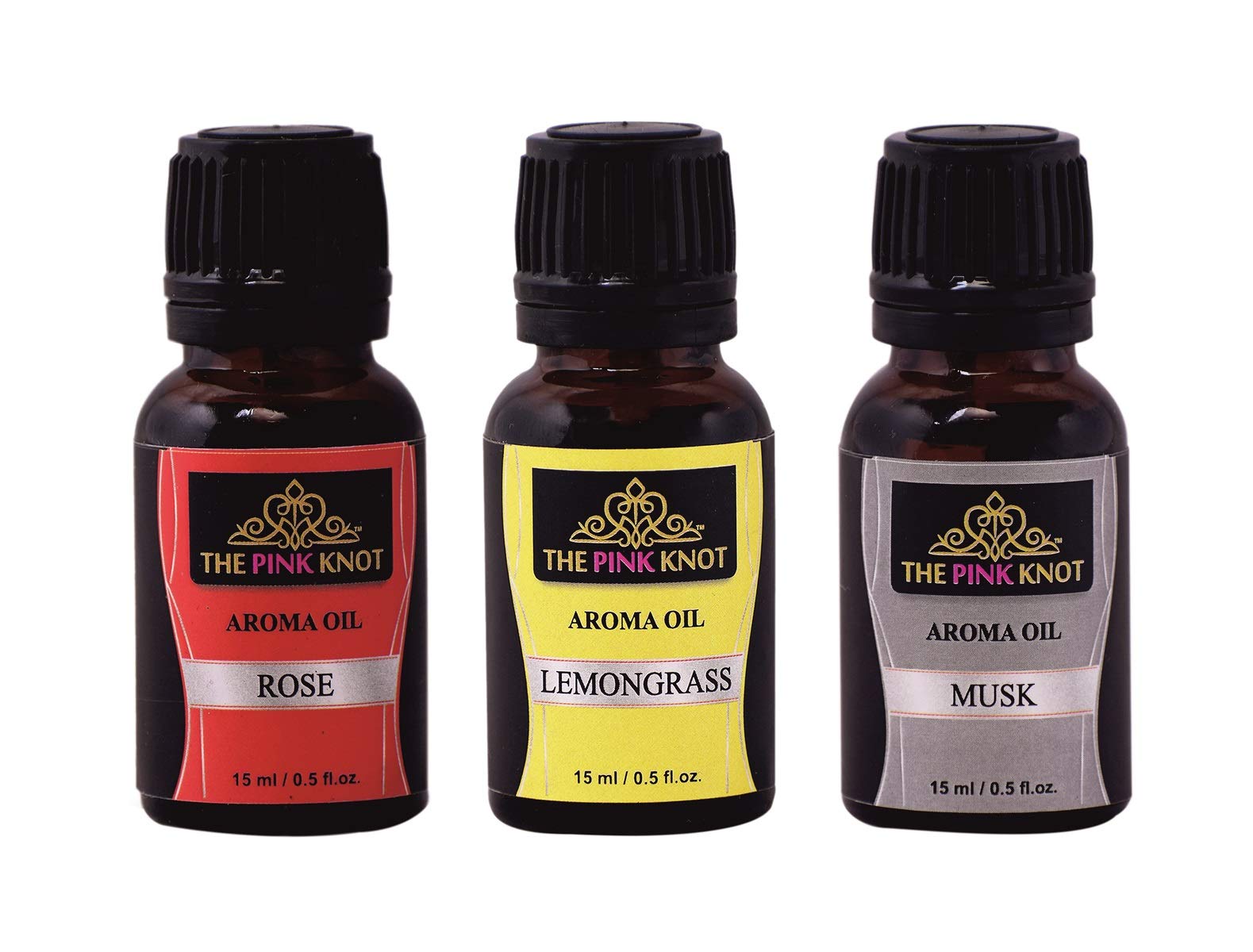 THE PINK KNOT Rose Lemongrass & Musk set of three aromatic fragrant diffuser oil by (15ml each)