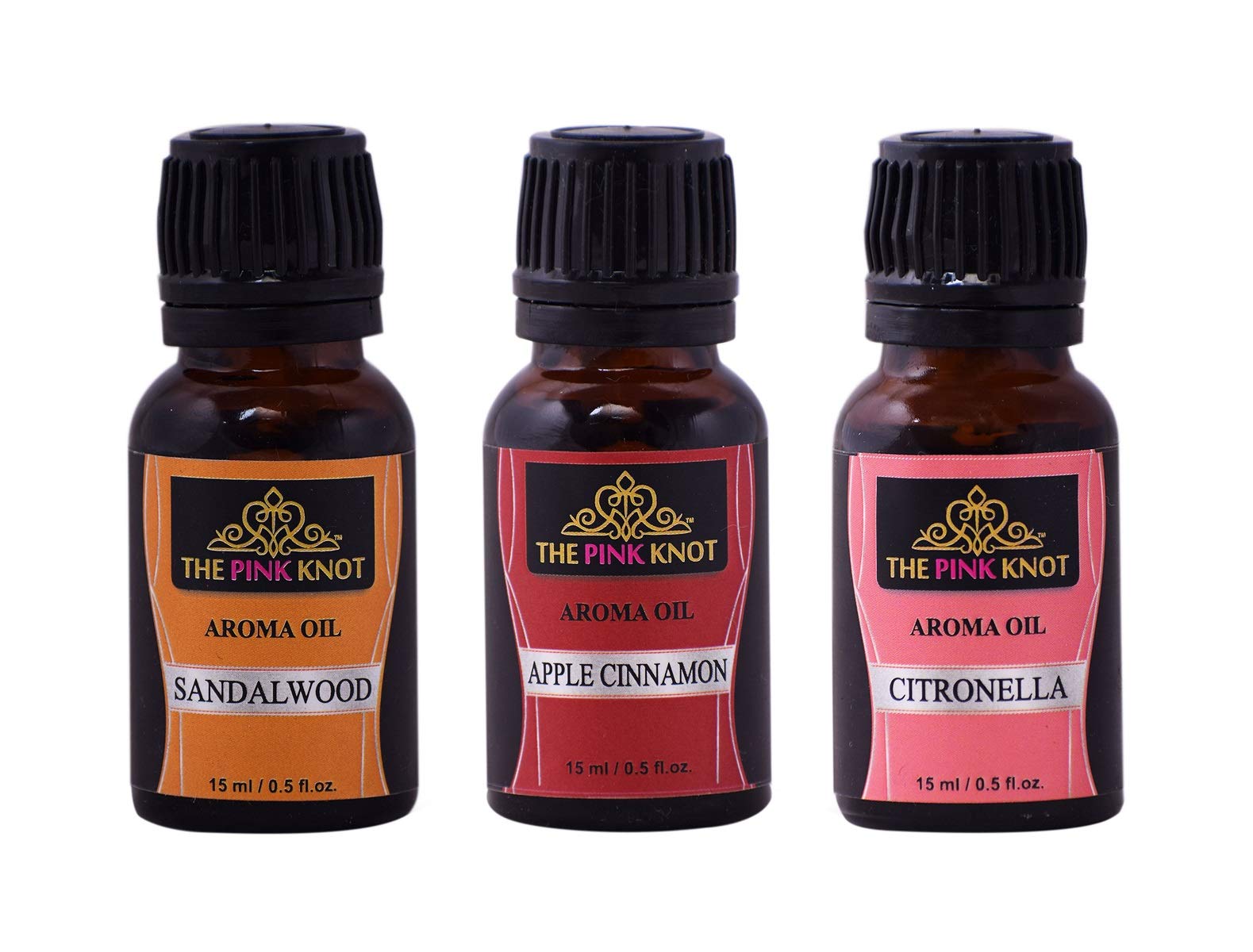 The Pink Knot Sandalwood Apple Cinnamon & Citronella set of three aromatic fragrant diffuser oil(15ml each)