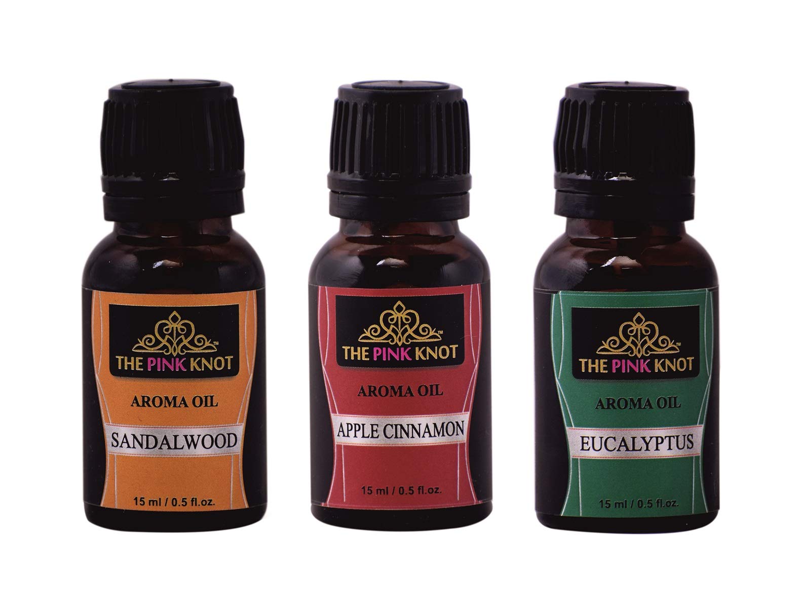 THE PINK KNOT SandalwoodApple Cinnamon & Eucalyptus set of three aromatic fragrant diffuser oil (15ml each)