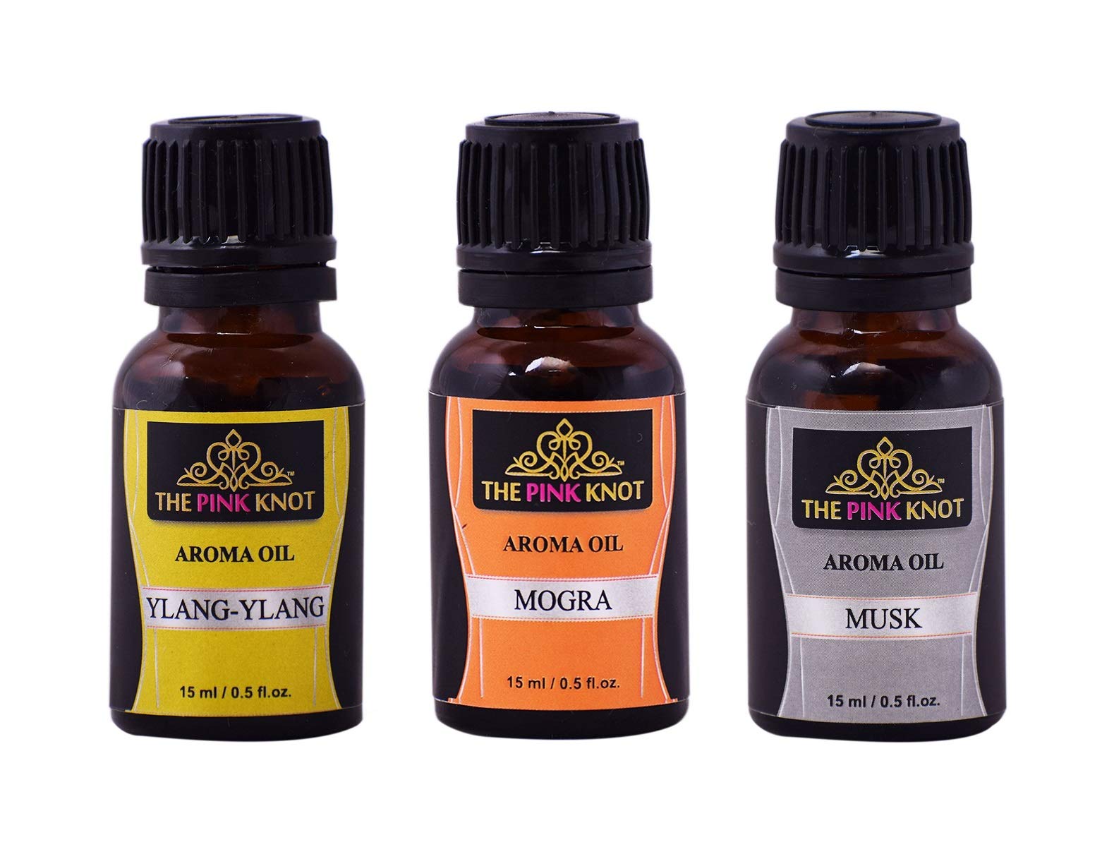 The Pink Knot Ylang-Ylang Mogra & Musk set of three aromatic fragrant diffuser oil (15ml each)