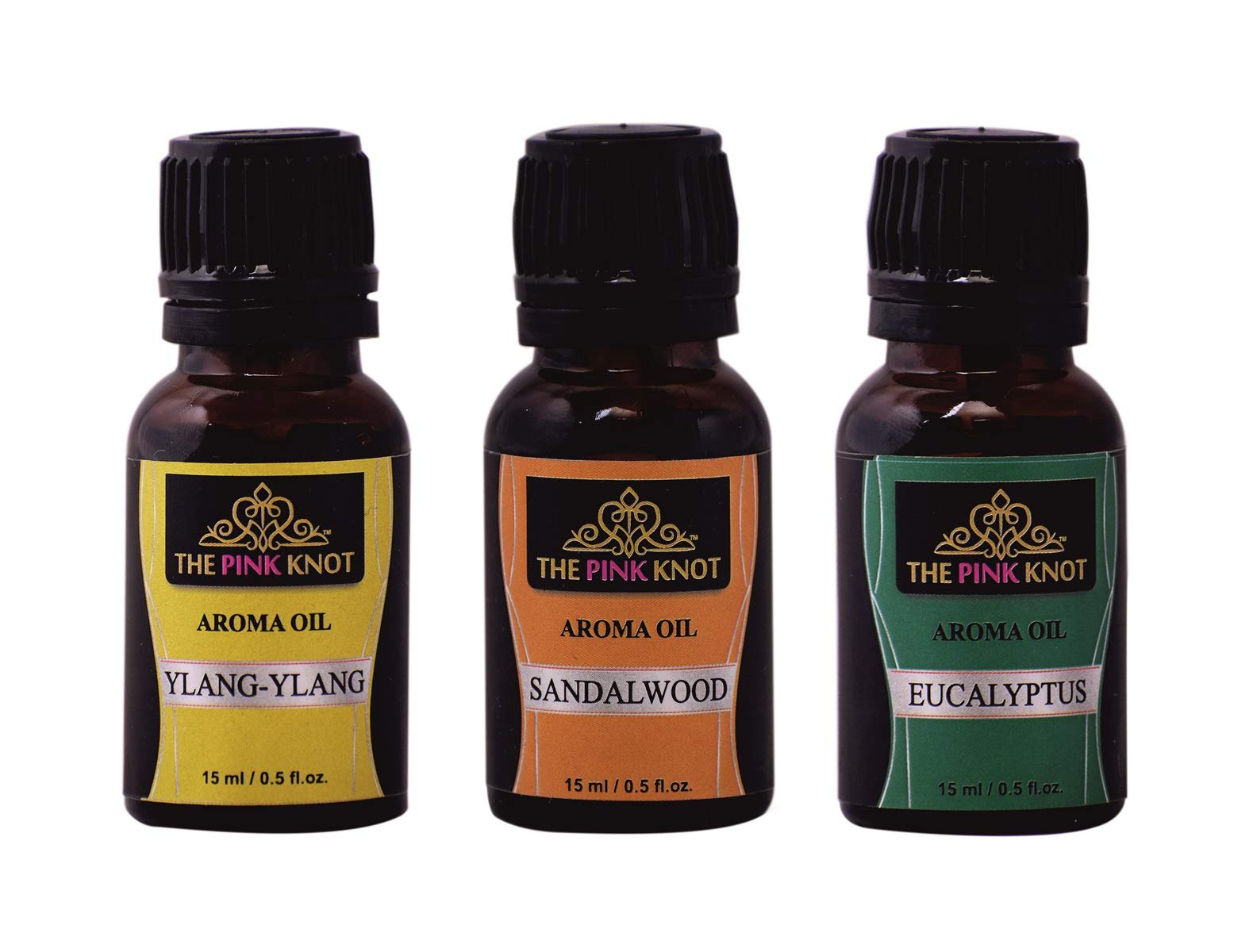 THE PINK KNOT Ylang-Ylang Sandalwood & Eucalyptus set of three aromatic fragrant diffuser oil (15ml each)