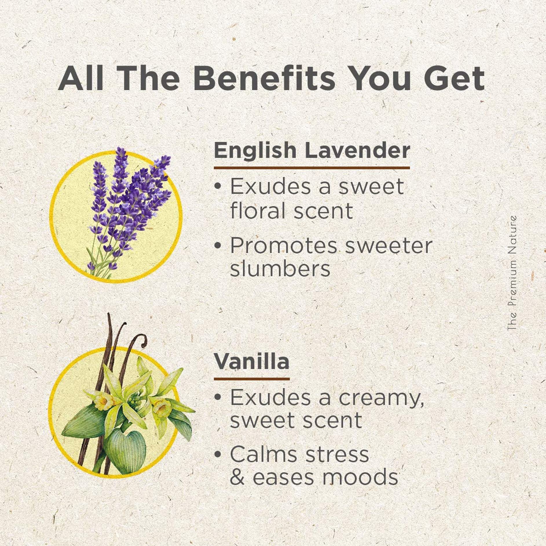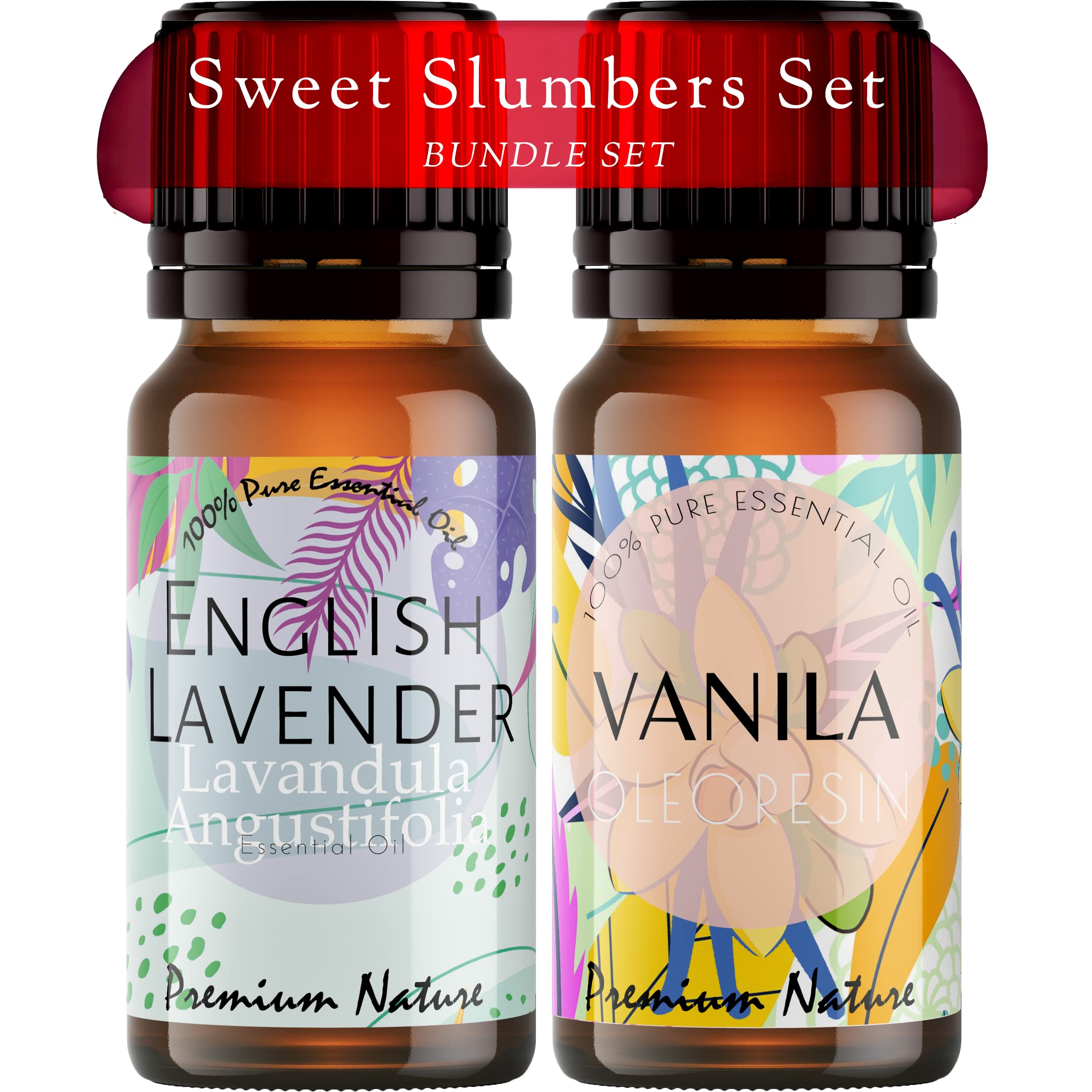 The Premium Nature English Lavender Oil & Vanilla Essential Oil -Sweet Slumbers Set for Stress Relief & Sleep - 100% Pure Therapeutic Grade Essential Oils Set - 2x10ml