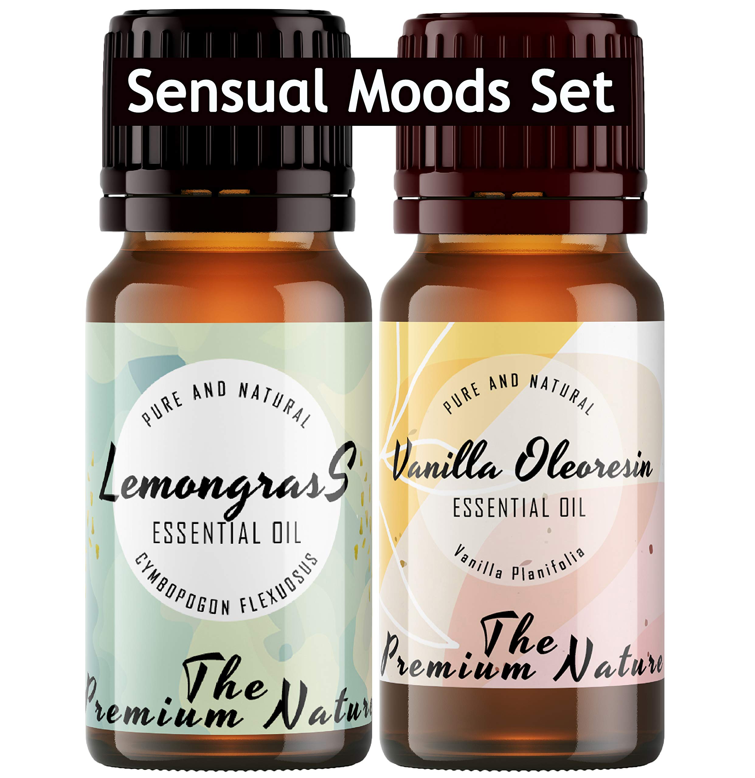 The Premium Nature Lemongrass Oil & Vanilla Oil - Sensual Moods Set for Fun Romantic Nights in Bed - 100% Pure Therapeutic Grade Essential Oils Set - 2x10ml