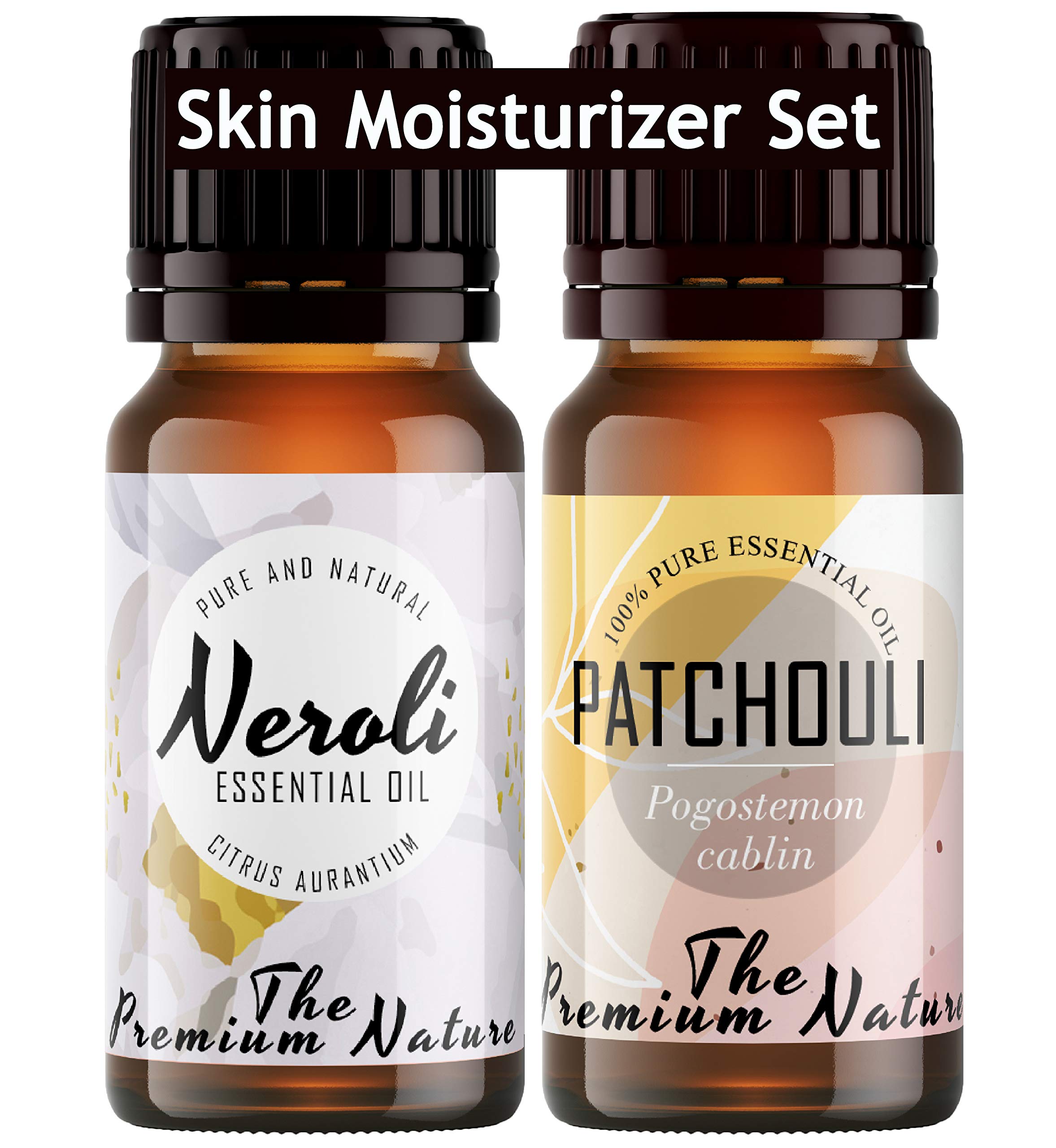 The Premium Nature Neroli Oil & Patchouli Oil - Skin Moisturizer Set for Moisturized & Supple Skin - 100% Pure Therapeutic Grade Essential Oils Set - 2x10ml