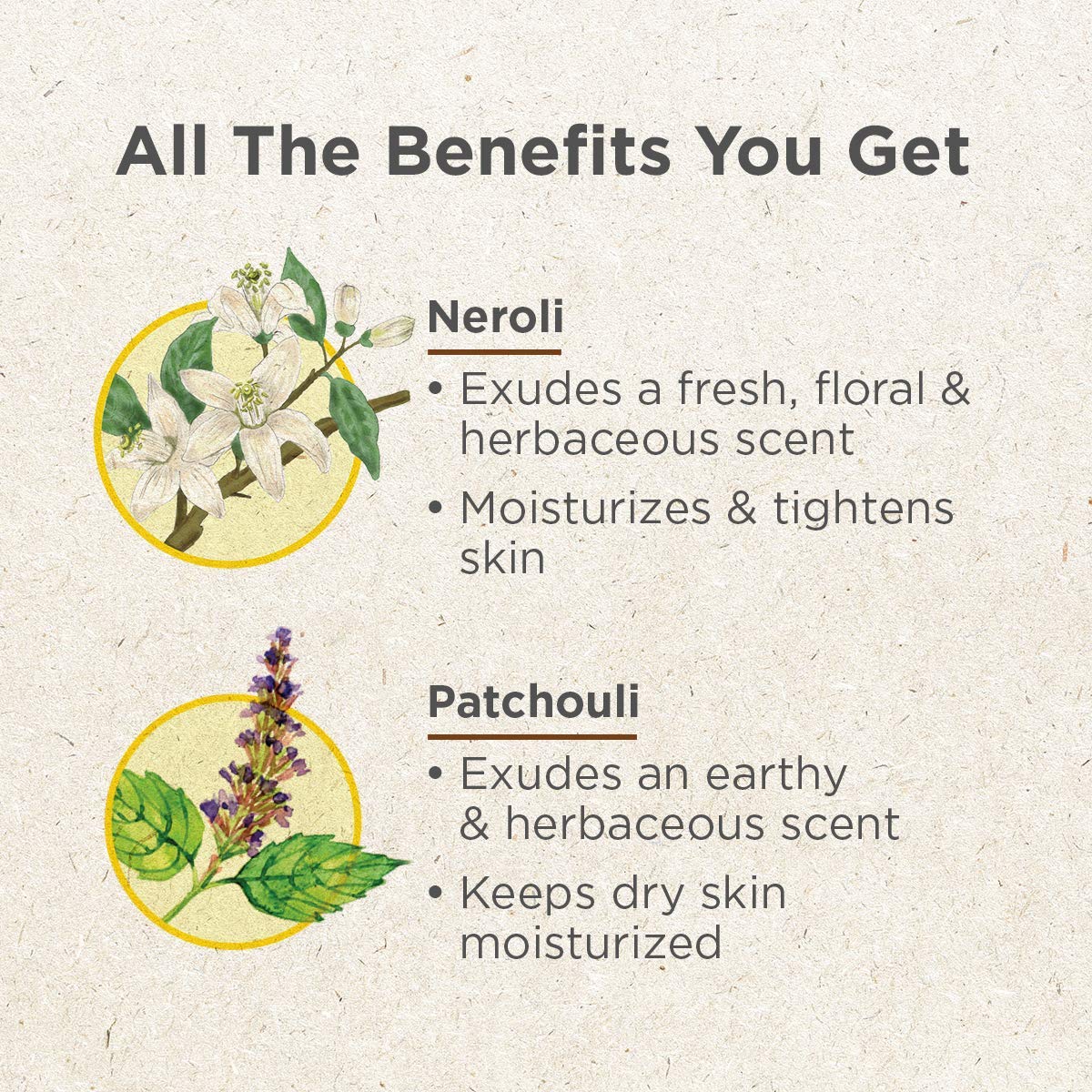 • KEEP SKIN MOISTURIZED & SUPPLE - Use neroli oil & patchouli oil together to boost up skin hydration & tighten skin texture for that ageless well-nourished complexion.