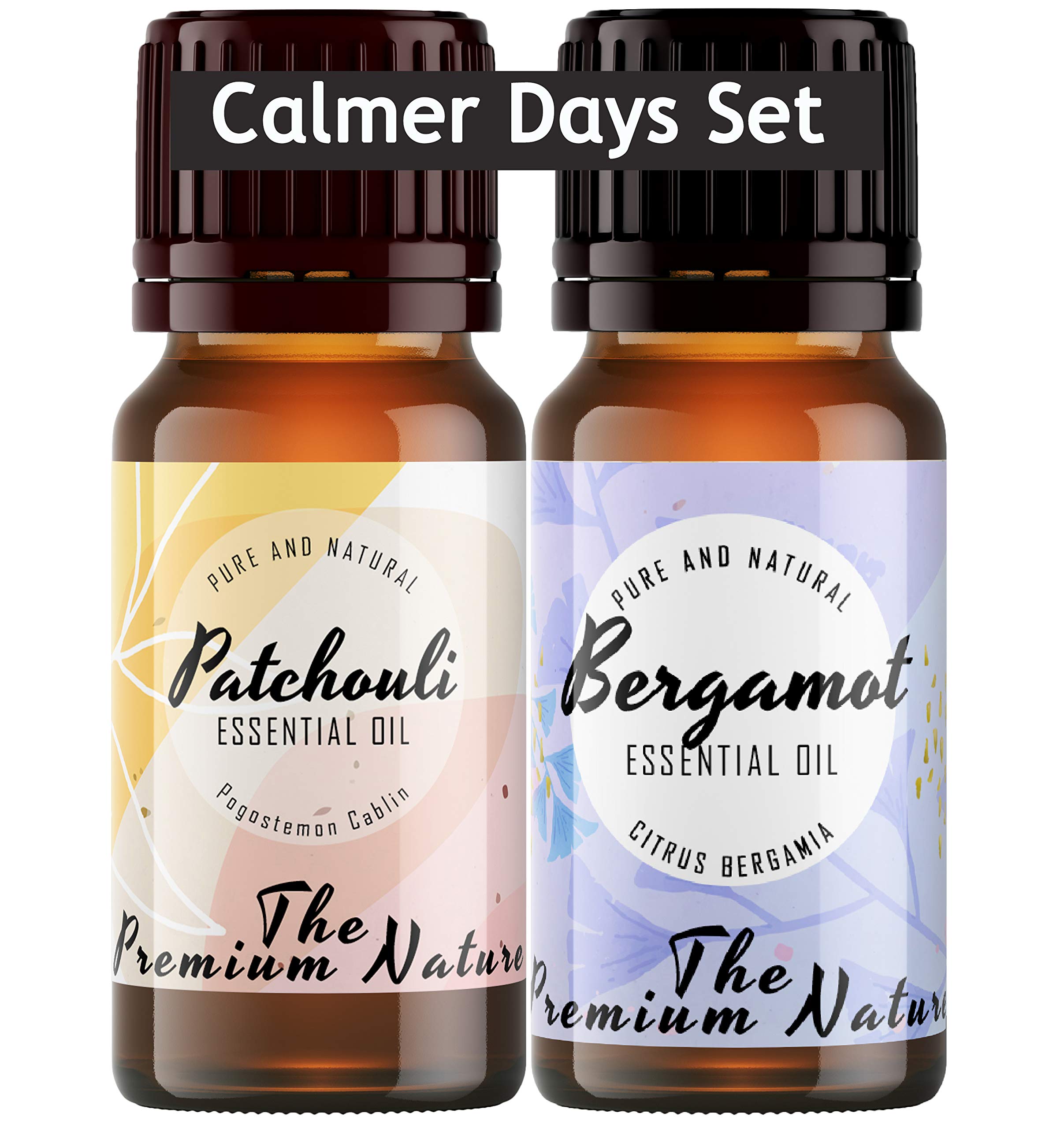 The Premium Nature Patchouli & Bergamot Essential Oil - Calmer Days Set For Meditation & Uplift Mood - 100% Pure Therapeutic Grade Essential Oils Set To Discover Inner Balance & Positivity -2x10ml