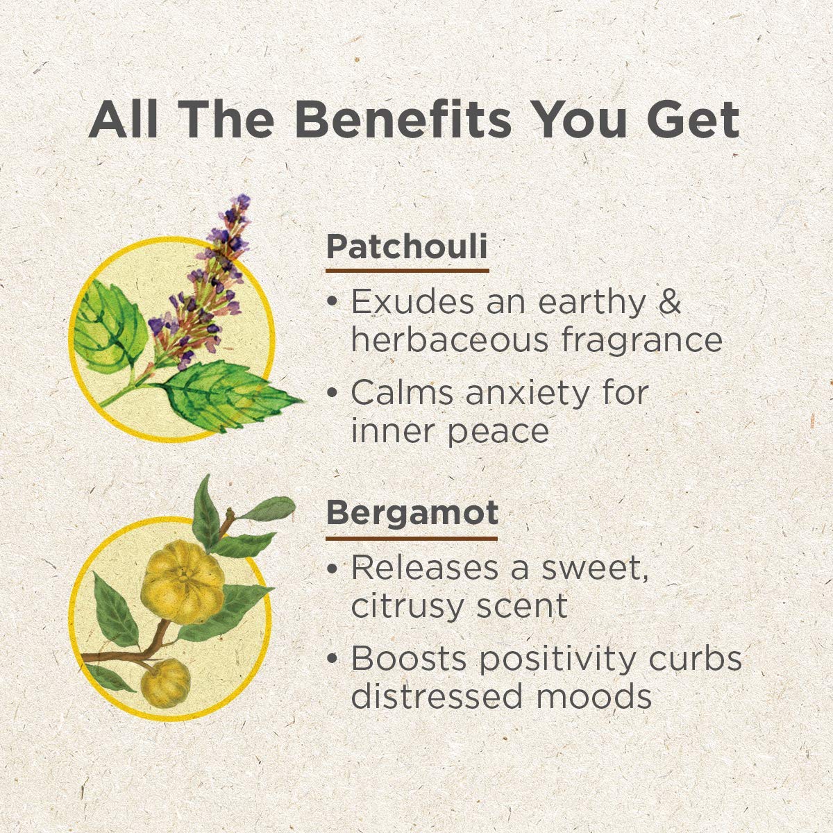 • NATURAL INGREDIENTS - Our patchouli essential oil for diffuser and bergamot oil are steam-distilled to produce the purest form of patchouli essential oil for diffuser and bergamot essential oil organic.